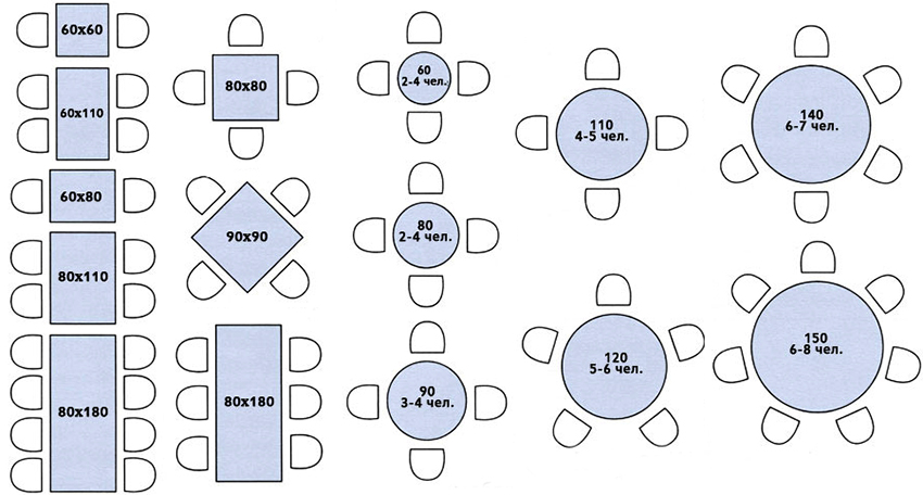 Standard dimensions of the kitchen table: product width and depth