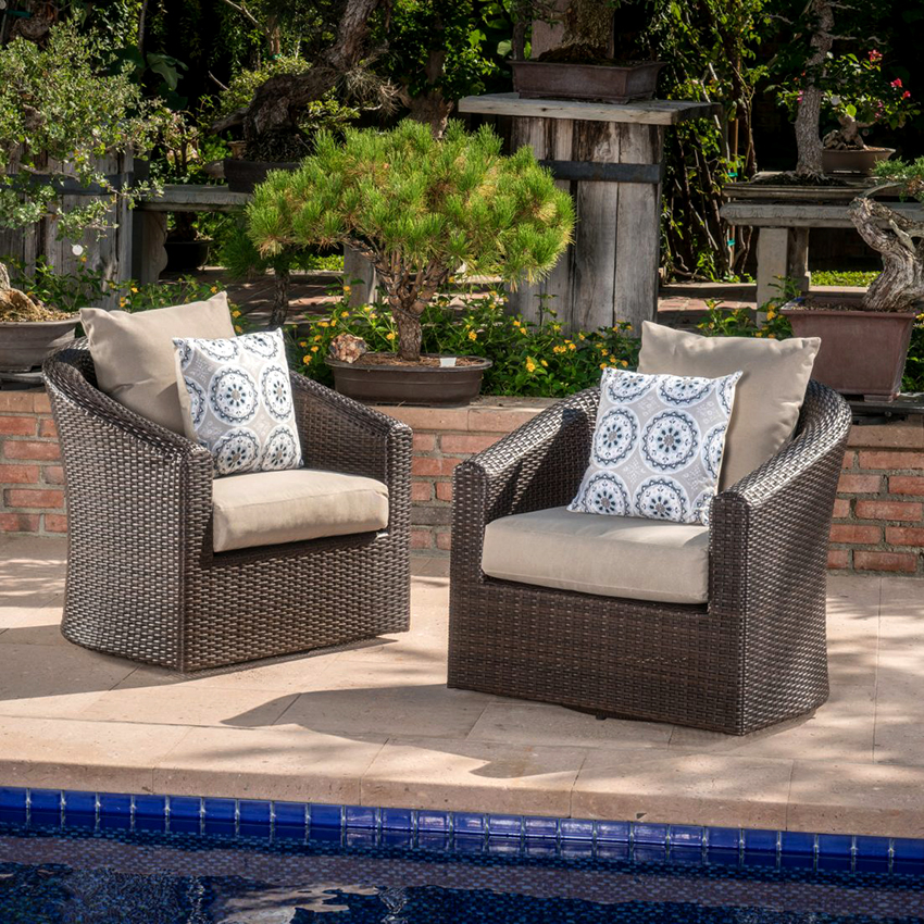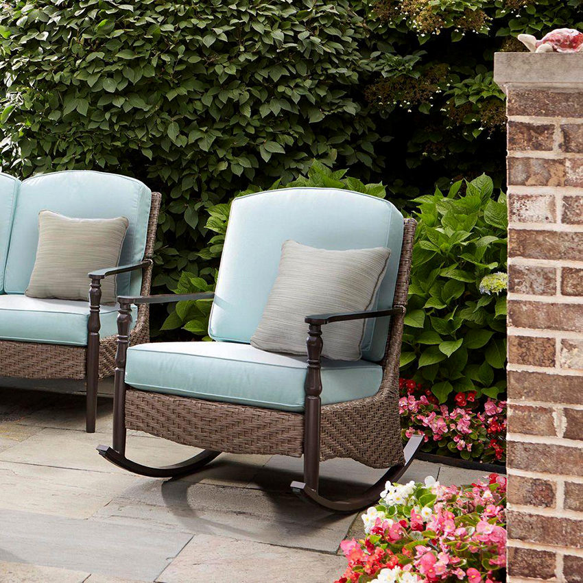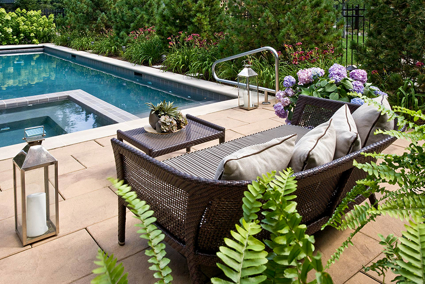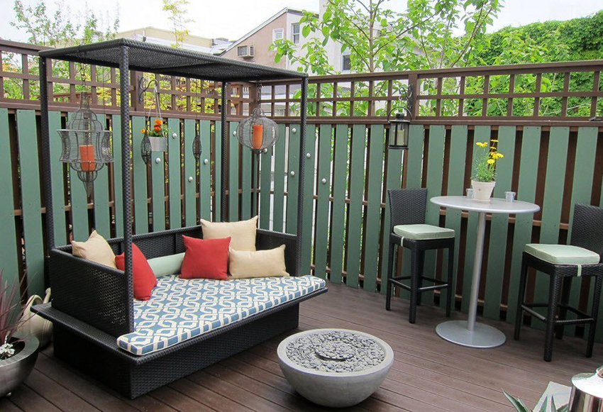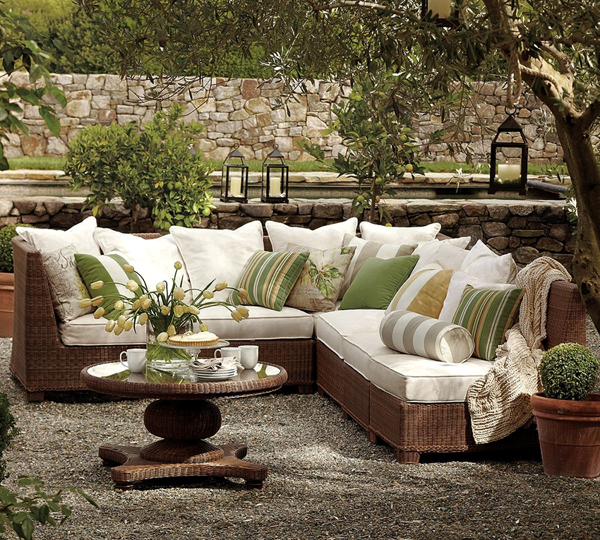 The quality of the pillows. Outdoor upholstered furniture should not be afraid of moisture and dust, and should also be resistant to ultraviolet radiation. For this reason, it is worth making sure that the pillows are made of dense, high quality material. Products with replaceable covers are an excellent solution.