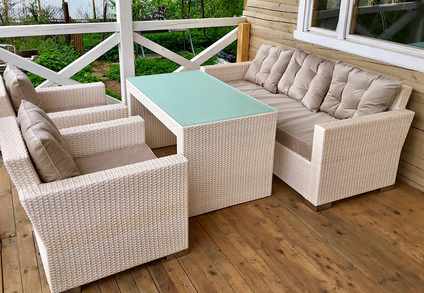 Artificial rattan is not susceptible to mold or mildew, it is hypoallergenic, resistant to moisture and adverse weather conditions. Wicker garden furniture made from it is perfect for verandas, gazebos and open spaces. It does not need to be brought into the house during the cold season. It retains its shape and does not deform due to rain, snow or temperature extremes.
