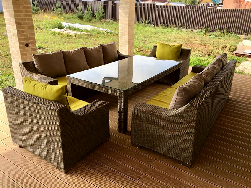 Artificial rattan furniture for the garden does not need to be brought indoors for the winter, because such material is not afraid of sudden temperature changes