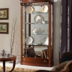 Corner models equipped with one high door are a rather popular option for display cabinets in a modern interior. Such furniture is especially relevant for small spaces.