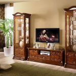 In terms of style, the cupboard can be designed for a wide variety of trends. The most common in the classical style and its subspecies, such as Rococo or Empire, and others. When choosing a model and material of manufacture, it is necessary to take into account the general style of decoration of the room and other features. For example, a sideboard made of natural oak or walnut will look great in a classic-style living room.