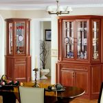 With a shortage of free space, you should pay attention to the corner sideboards, which will look great against the general background and will significantly save space. The most common form of corner construction is semicircular or irregular rhombus. They also produce sideboards for installation in the corner of the room in the form of a trapezoid. The choice should be guided by personal preference. The corner sideboard practically does not clutter up the space, so it does not interfere with free movement around the room.