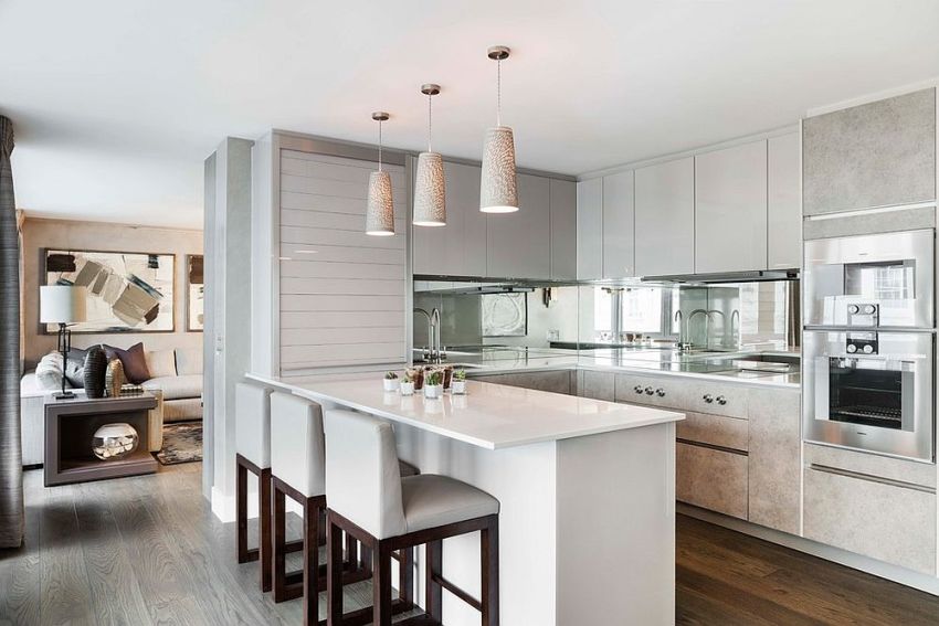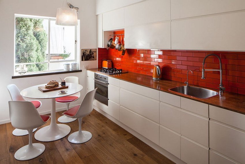 Cupboards with utensils do not have to be nearby, they can be located locally in each of the zones of the kitchen triangle