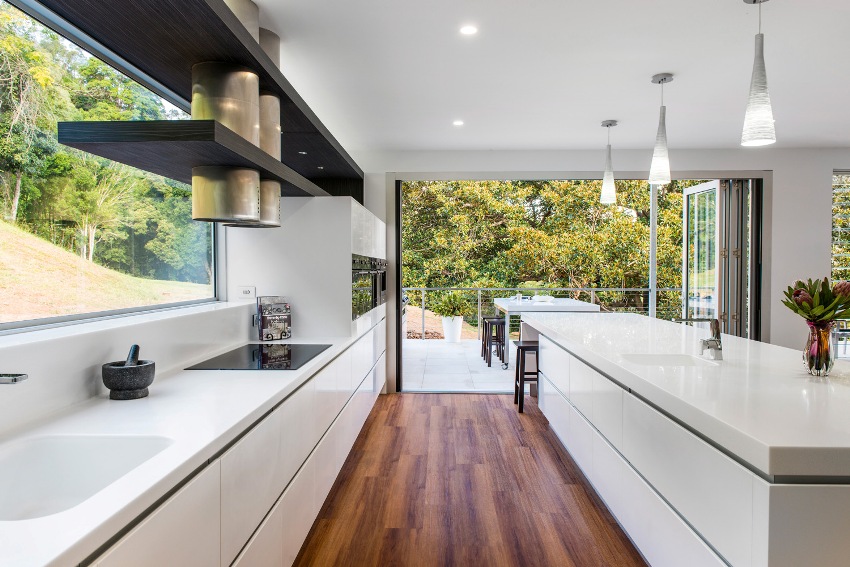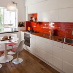 It is also necessary to take into account the fact that the hostess must freely get items from the upper shelves. There are exceptions when the height of the hanging kitchen cabinets is much higher than the standards. Typically, these cabinets are installed in rooms with high ceilings. It is also very important that the furniture does not block the smoke ventilation ducts, and that the gas and ventilation pipes are located above the cabinets, and not inside them.