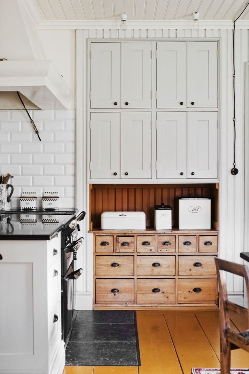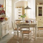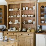 For country-style and Provence kitchens, sideboards of a simple shape made of light wood, equipped with open-type drawers and shelves, are more acceptable. The highlight of these sideboards are worn or artificially aged surfaces equipped with metal fittings.