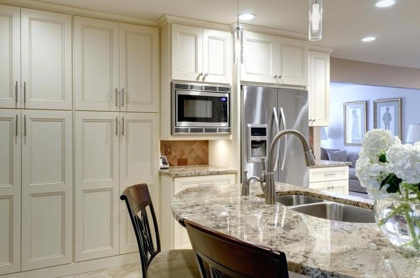 Helpful advice! If household appliances are already installed in the kitchen, then the pieces of furniture must be placed in such a way that the operation of each appliance is convenient.
