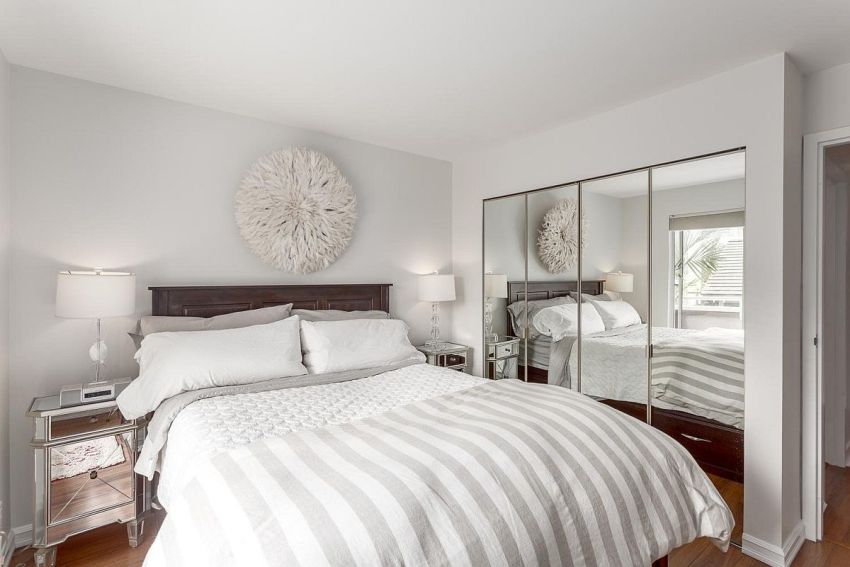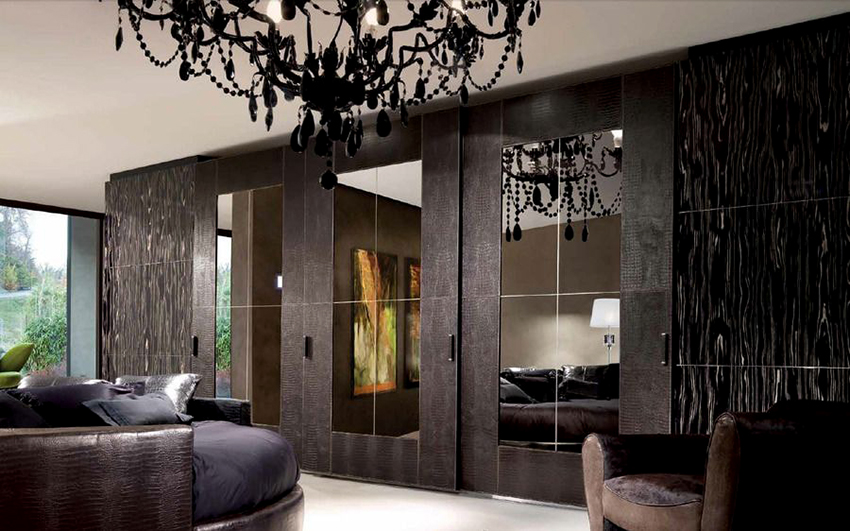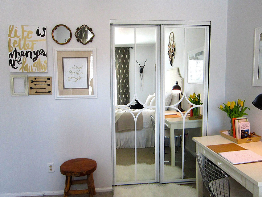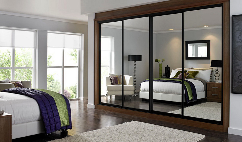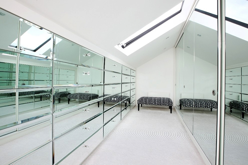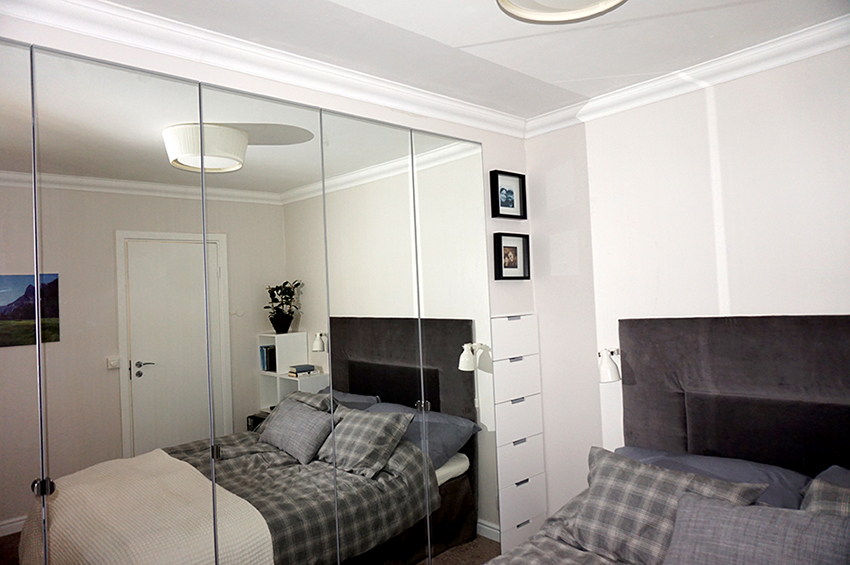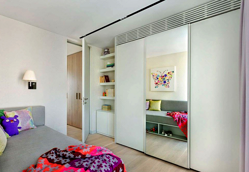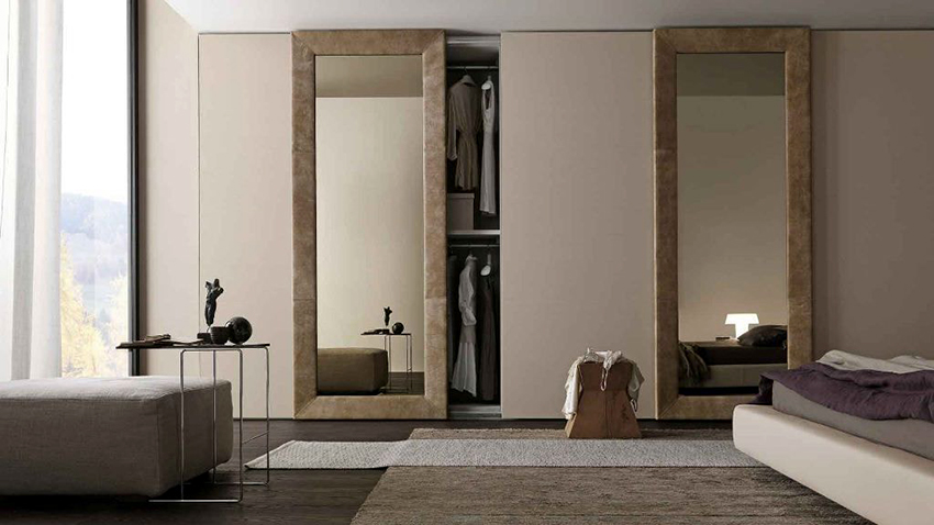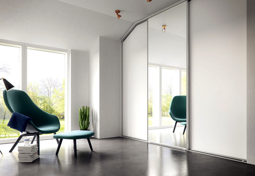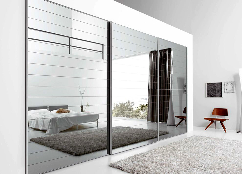Mirrored facades perfectly replace the traditional full-length mirror and create the illusion of a large room