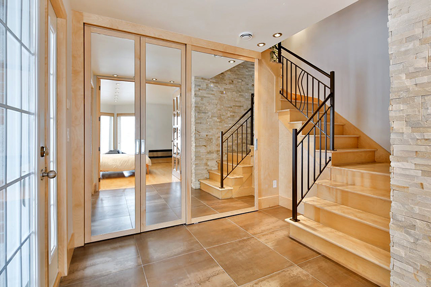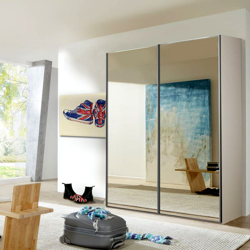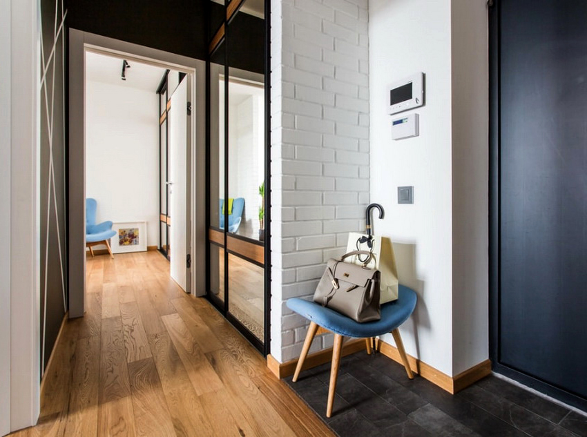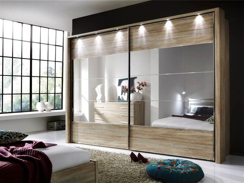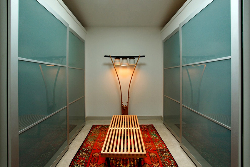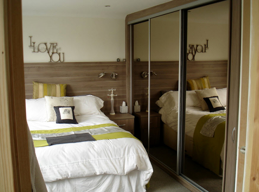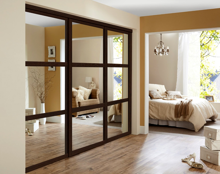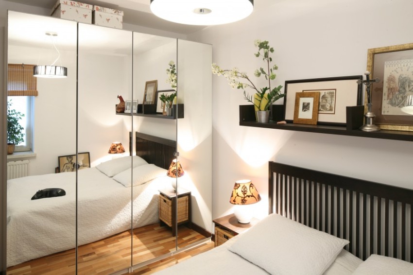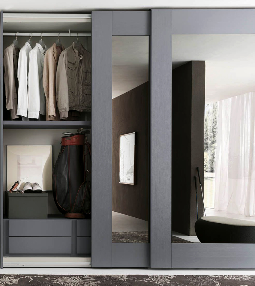 Mirrored facades perfectly replace the traditional full-length mirror and create the illusion of a large room