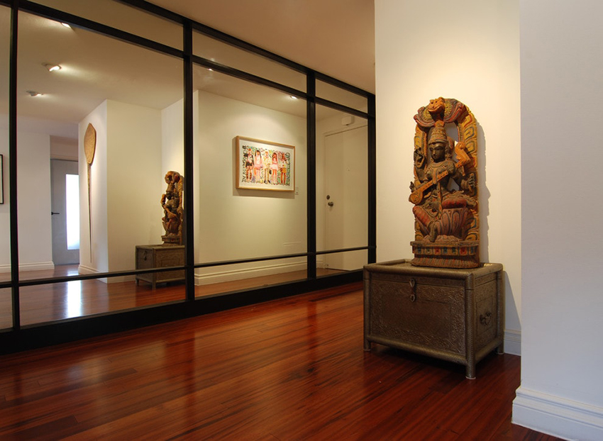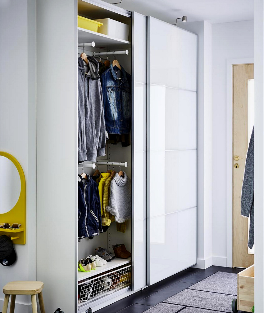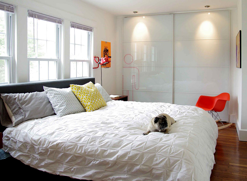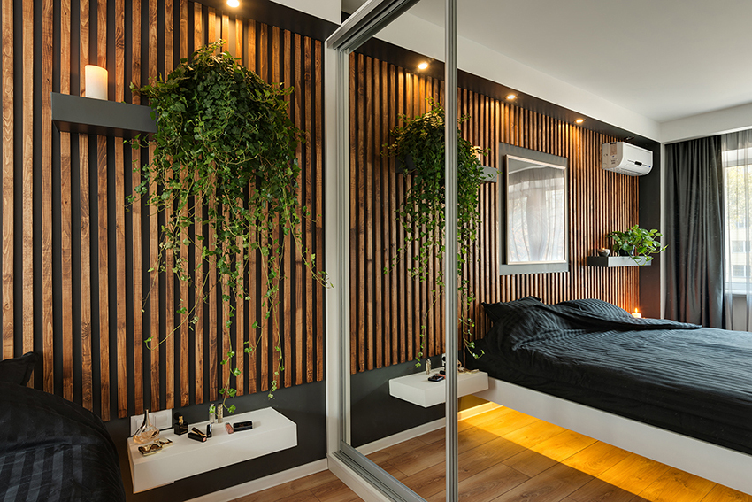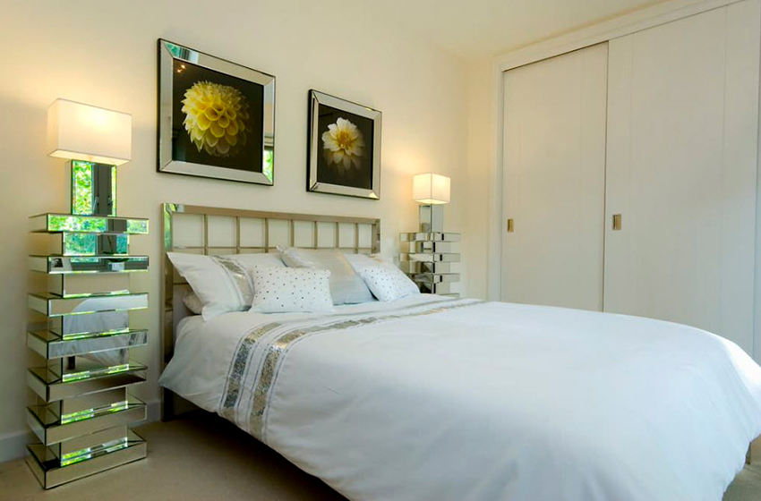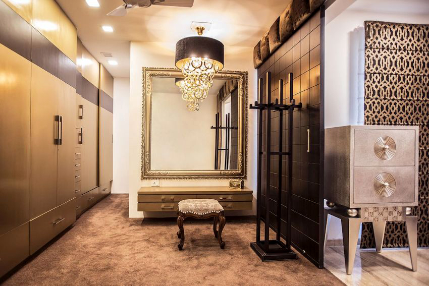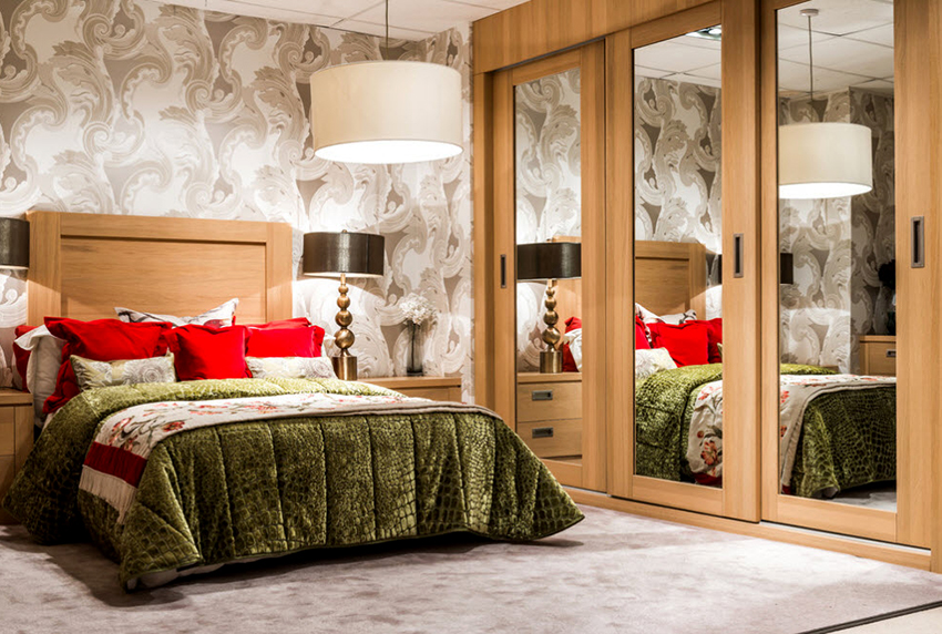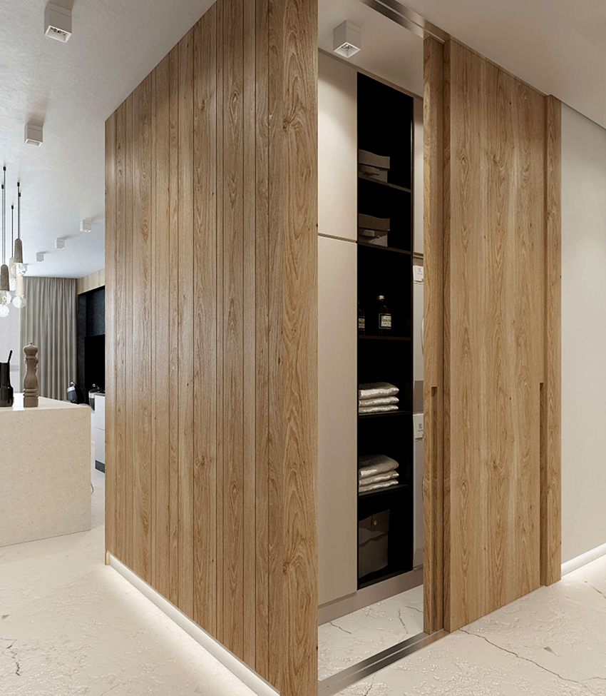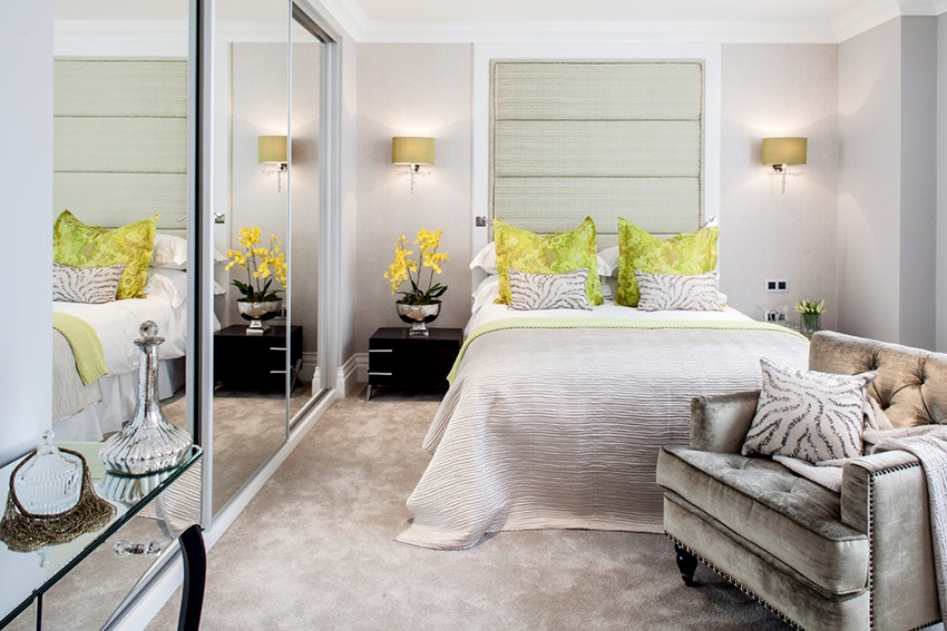 Mirrored facades perfectly replace the traditional full-length mirror and create the illusion of a large room