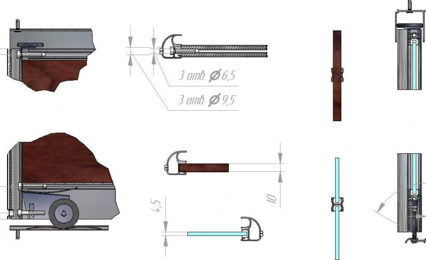 The rollers located in the lower and upper parts of the structure serve to hold the sash in an upright position. The carriage receives almost no load. The lower rollers are fitted with bearings that provide the system with reliability and good mobility. These are very durable products that are larger than the top elements. The design includes the tendrils of the stopper.