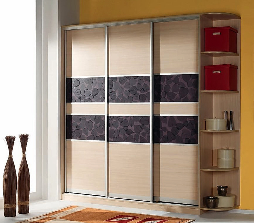 In addition to traditional materials used for decorating cabinet doors, modern technologies and their various combinations are used. Facades can be decorated with stained glass windows, sandblasted ornaments and photographic images. A variety of patterns and patterns are applied to frosted glass or a mirror surface using a sandblasting machine. You can choose the appropriate version from the ready-made options or create a custom-made ornament. The price of a built-in wardrobe with such a facade is quite high.