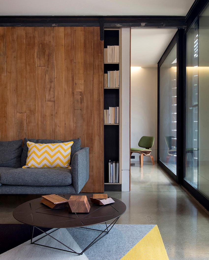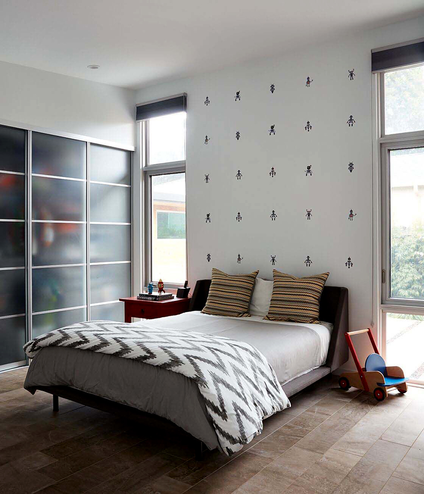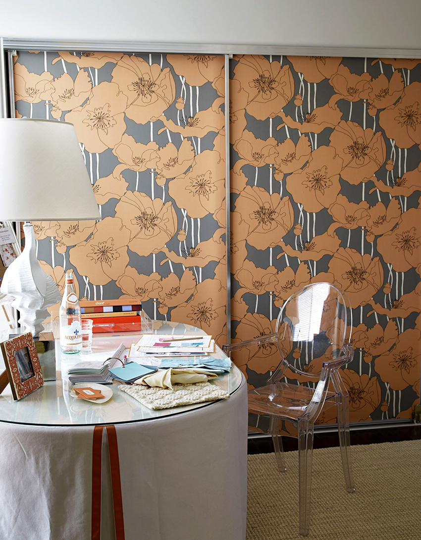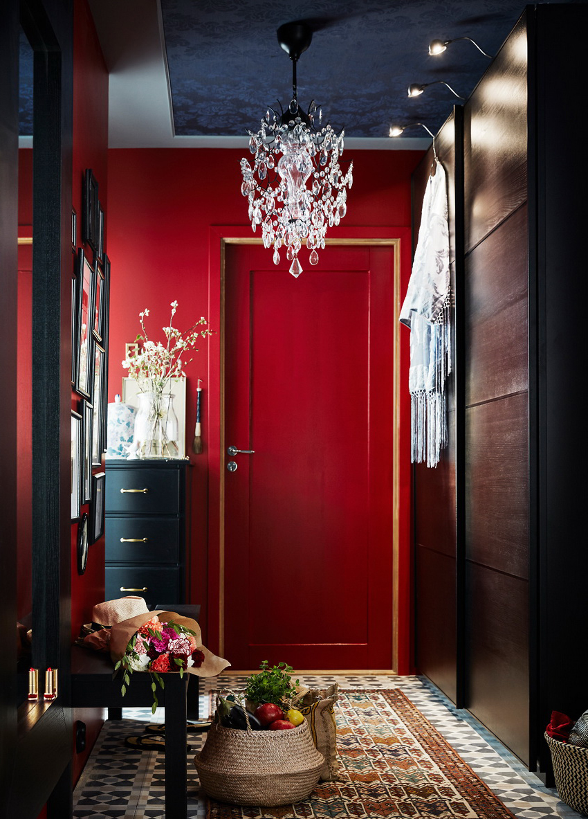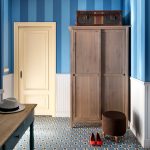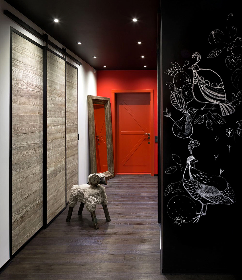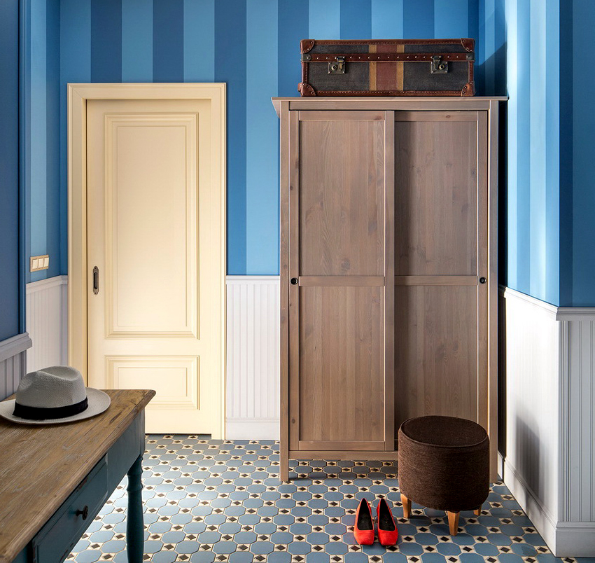 In order to diversify sliding-door wardrobes, which in general consist of only a few canvases of sliding doors, a combination of color schemes is used to create facades