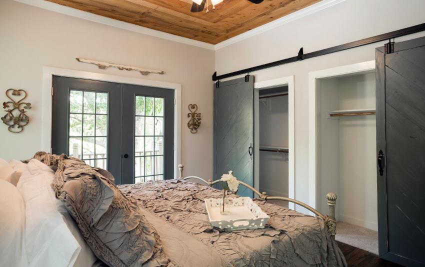 For the bedroom, the interior will be different from the hallway wardrobe. Street clothes and shoes are not stored here. The optimal filling is a large number of stationary or pull-out shelves for storing clothes and bedding. The drawers will contain underwear and socks. In the area with the barbell, place wrinkled clothes on the hangers