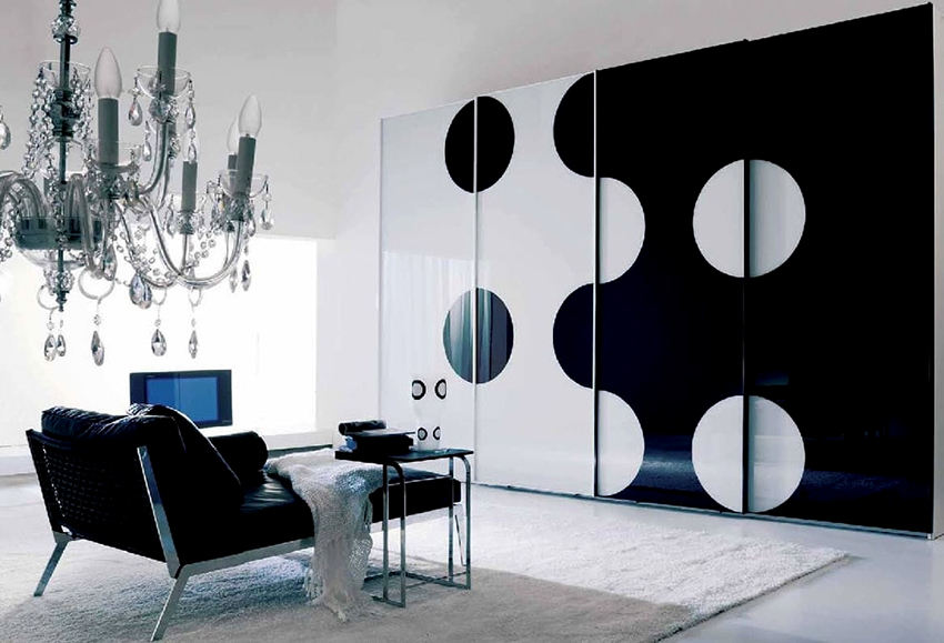 A popular polymer material used to make cabinet doors is plastic. It is easy to process, practical and reliable. The plastic facade of the sliding wardrobe - the photos clearly show this - can be painted in any color, be transparent, translucent, matte or glossy, which is ideal for a minimalist living room interior or a futuristic bedroom design.