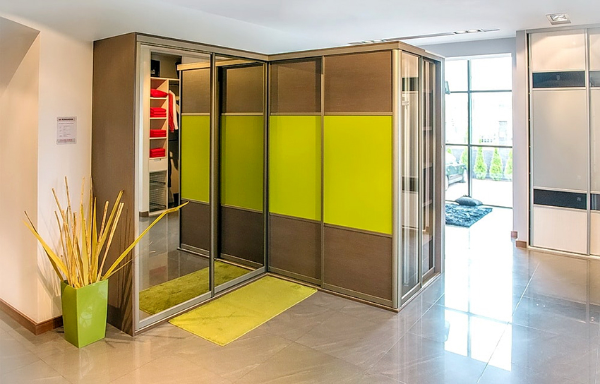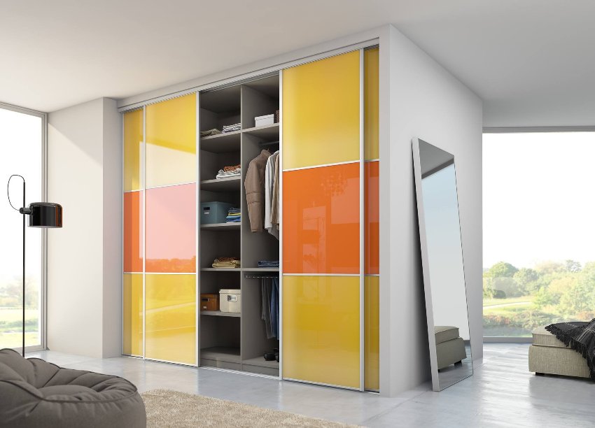 Sliding wardrobes: design photo structures with mirror and glass facades