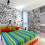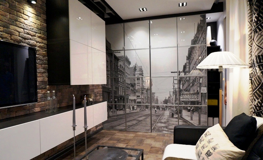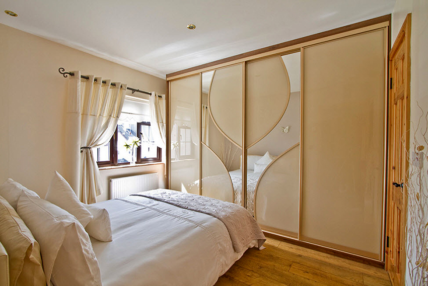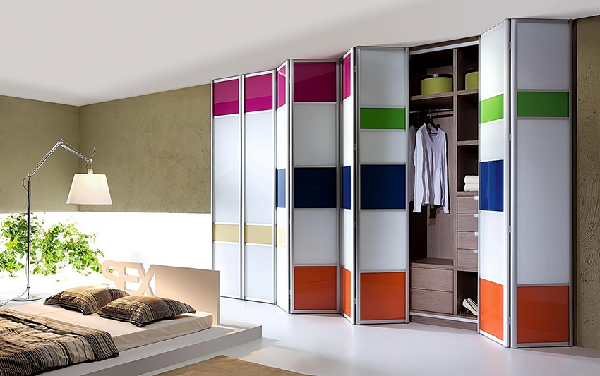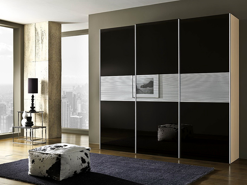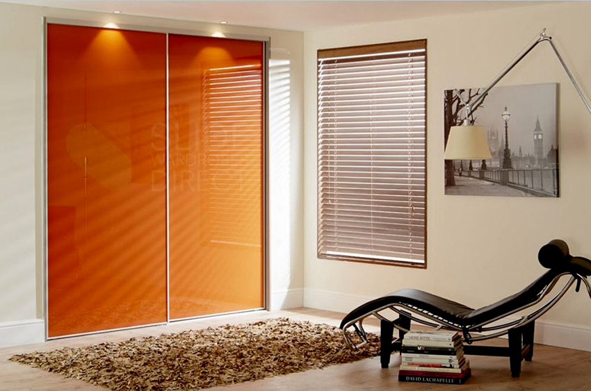 Currently, many manufacturers apply a colorful image to the glass, which is clearly displayed in the photo of the coupe doors. In this case, the facade can be glossy or matte.For small spaces, it is recommended to choose panoramic images; for a bedroom, you can use a family photo.