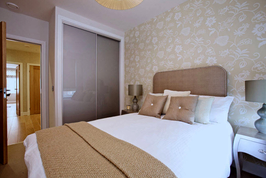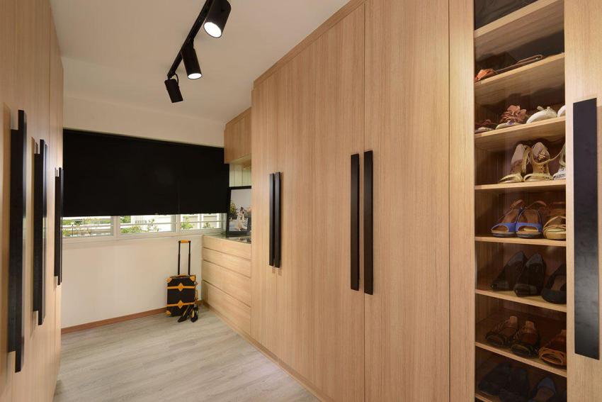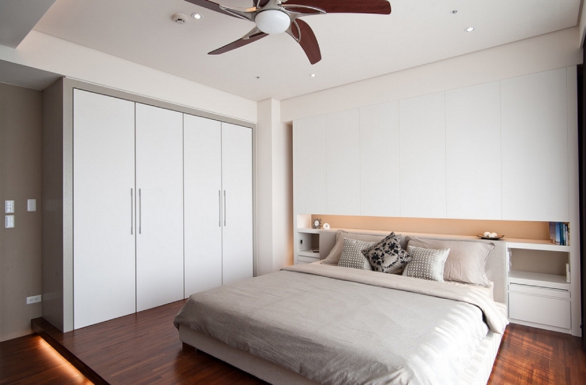 The design of the built-in wardrobe is such that it entirely takes up all the space allocated for it, which is used most effectively