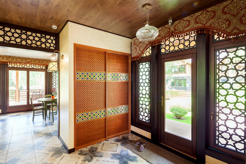 Stained-glass facades look extraordinary and expensive. A living element created in this way fits perfectly into a classic bedroom, living room or hallway. Such a decoration has a fairly high cost, but a good quality stained glass facade will last for many years without losing its pristine beauty.