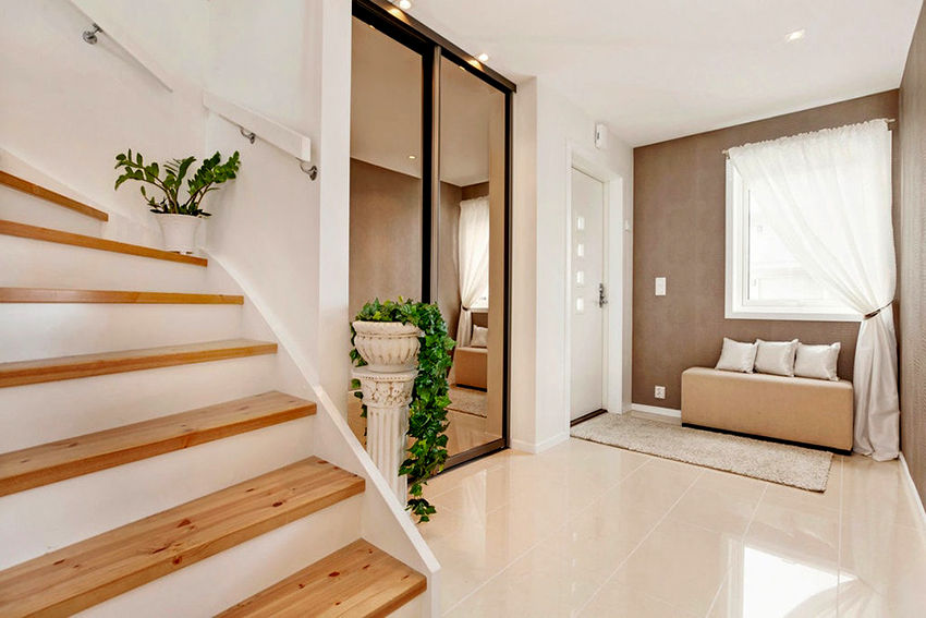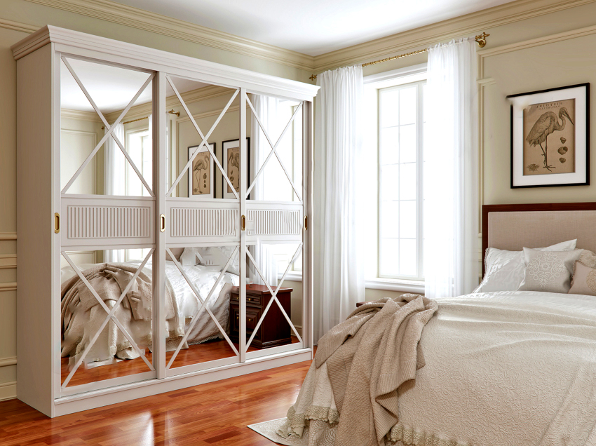 A wardrobe with a mirrored facade will help to emphasize the style of decoration of the room and the color scheme of the room. It is covered with a special film that protects the product from mechanical damage. The main advantage of a sliding wardrobe with a mirror - the photos clearly demonstrate this - is the visual increase in space, which is especially important for small and confined spaces. Such a facade can be combined with any interior design without cluttering it, making it light and stylish. A matte pattern can be applied to the surface of the mirror, making the facade an original decoration of the room.