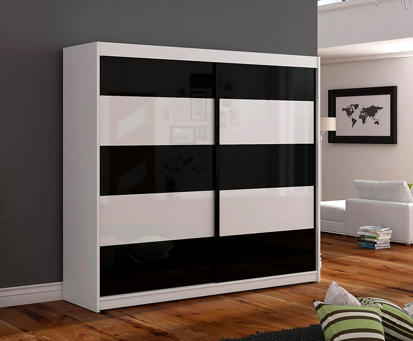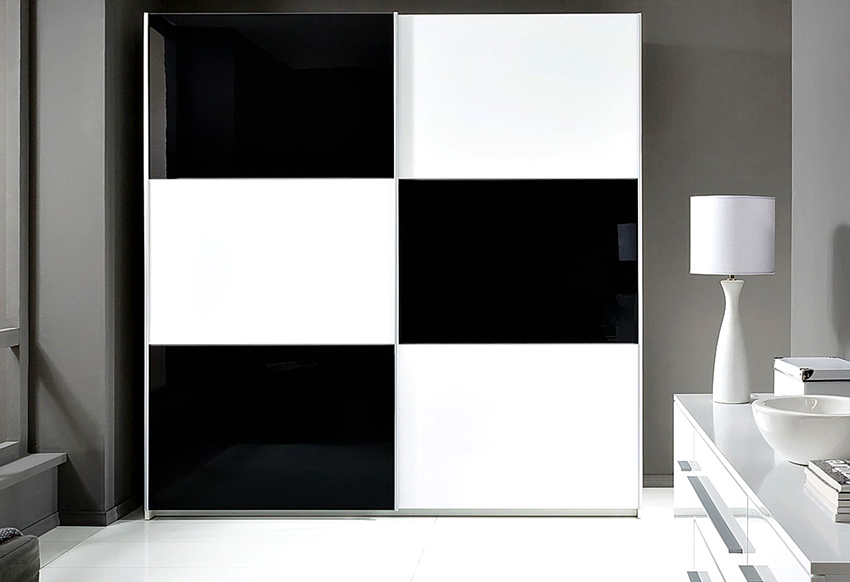 Standard facades of sliding wardrobes are traditionally made of solid chipboard or mirrors. Today, combined solutions are increasingly used, which are presented in various variations shown in the photo of sliding wardrobe doors. The classic facade features a variety of combinations of mirror surfaces and chipboard. The geometric variation consists of discrete rectangles, decorated with mirrors, particle board or glass. On the diagonal façade, the component parts are separated by metal profiles that allow the elements to be directed towards each other. Various materials can be combined here.