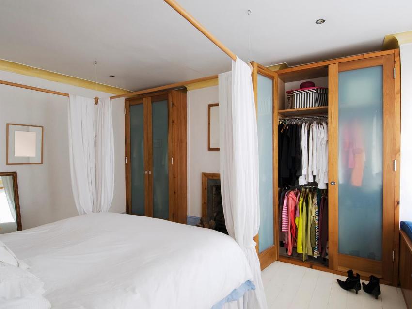The most common configuration option is to equip a wardrobe in a room niche, which is not very convenient to use for any other purposes.