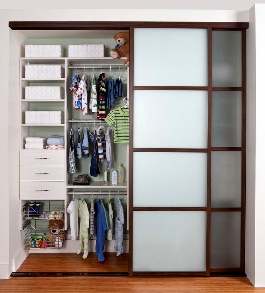 The inner filling of a children's wardrobe will differ significantly from that of an adult wardrobe. For a small child, it is important that everything you need is in the access zone at the bottom of the cabinet, where you can place not only items of clothing, but also toys. Various options for the placement of internal elements are clearly shown in the pictures of the wardrobe. Clothes on a hanger should be placed on a bar, which is adjustable in height. You need to choose the required value depending on the age of the child.
