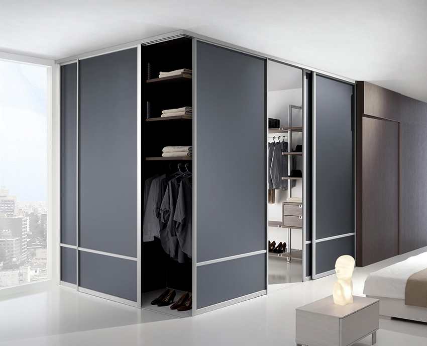 The design can be straight, angular or diagonal angled. The first option is represented by a rectangular product. This form is used for frame double-wing wardrobes. The corner model allows you to make the most of the corner, which is especially important for small rooms. This shape is most often used for square hallways and rectangular children's rooms. Despite the seemingly small size of the product, the built-in corner wardrobe is very roomy inside. However, in order for the structure to be easy to use, it is important to choose an internal layout.
