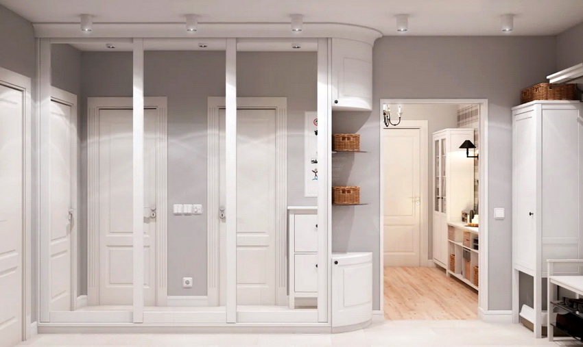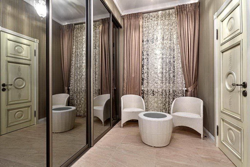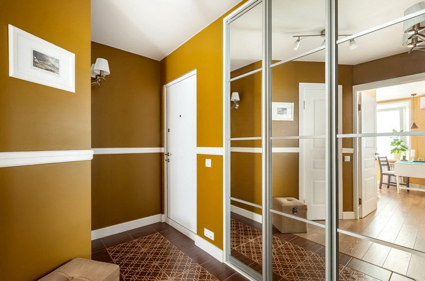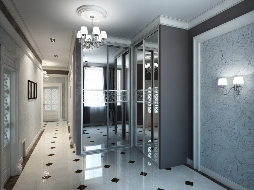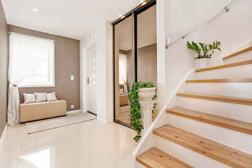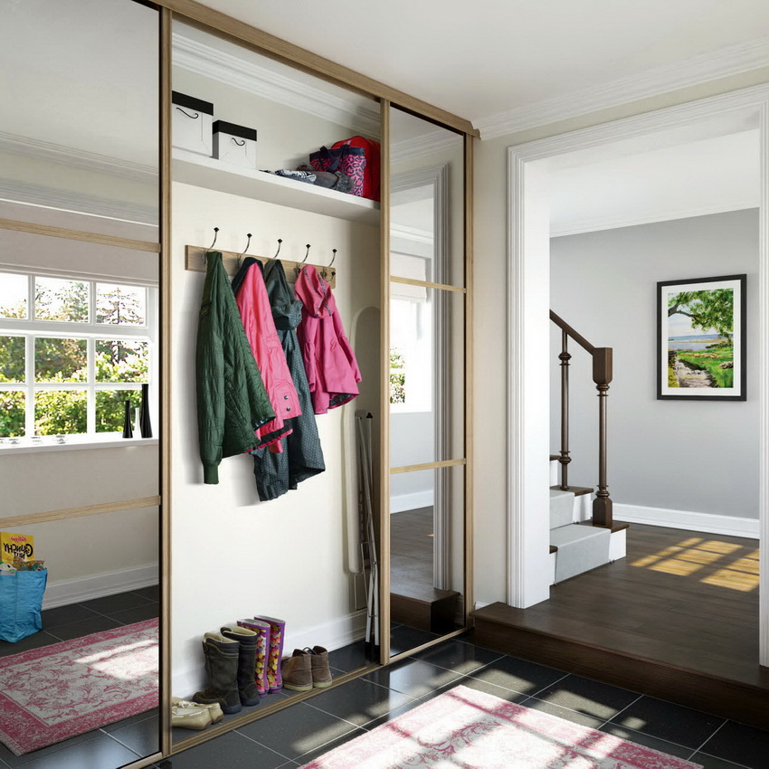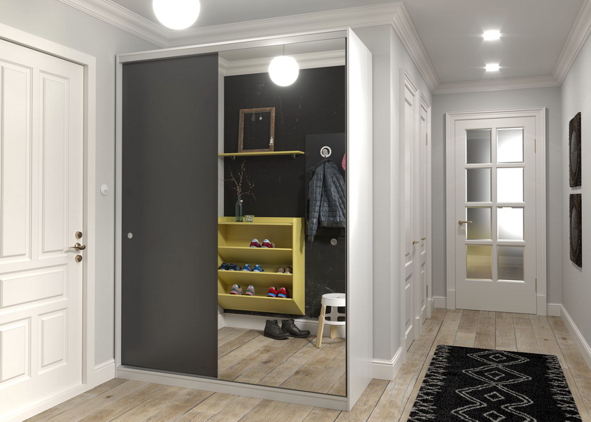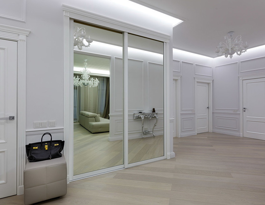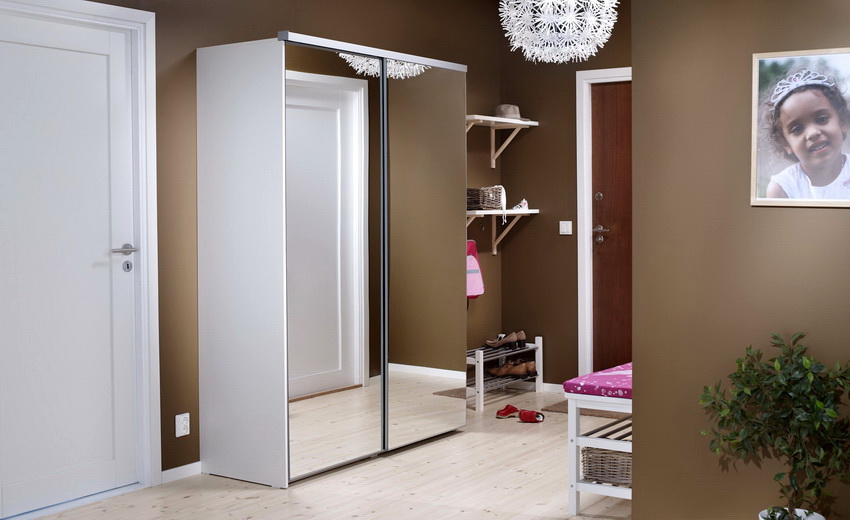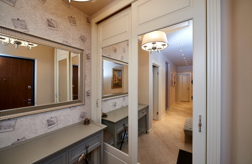 Mirrored doors installed in the wardrobe will expand the space, making the hallway noticeably larger