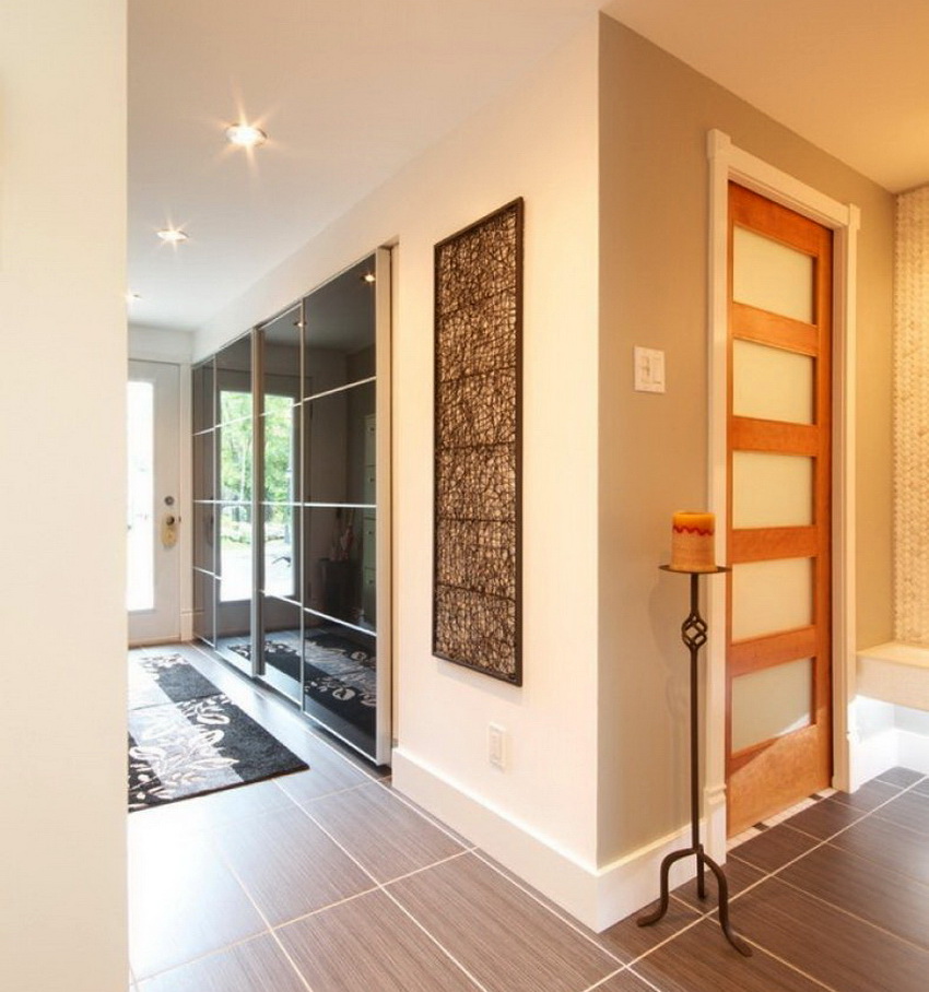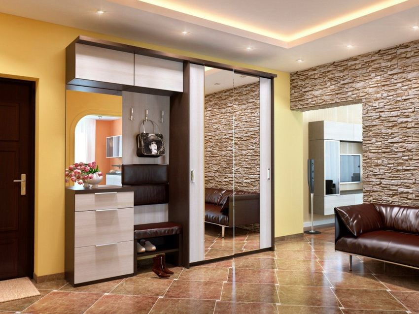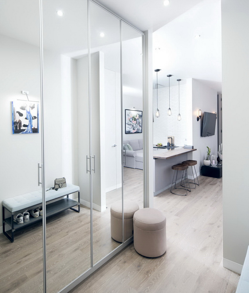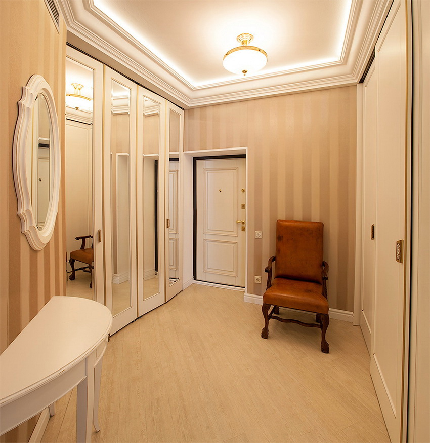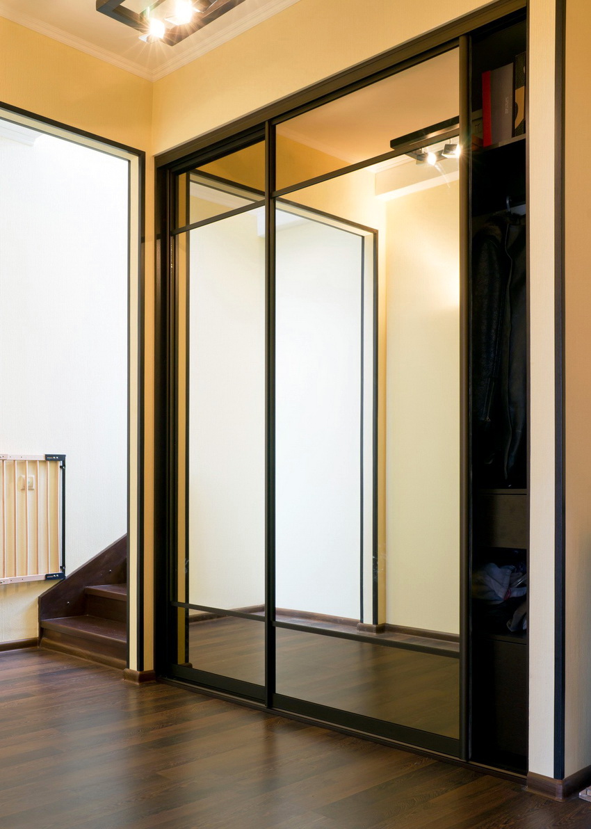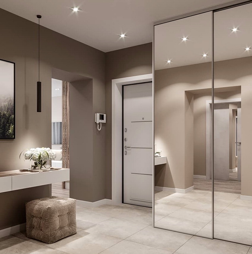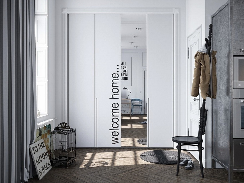 Mirrored doors installed in the wardrobe will expand the space, making the hallway noticeably larger