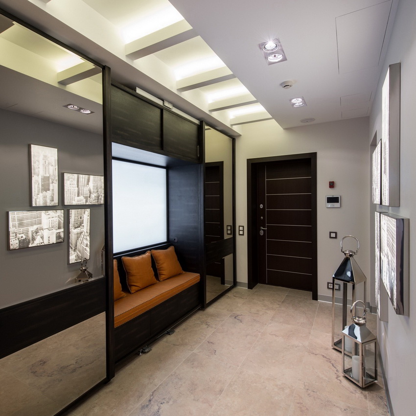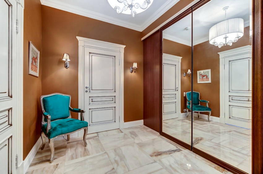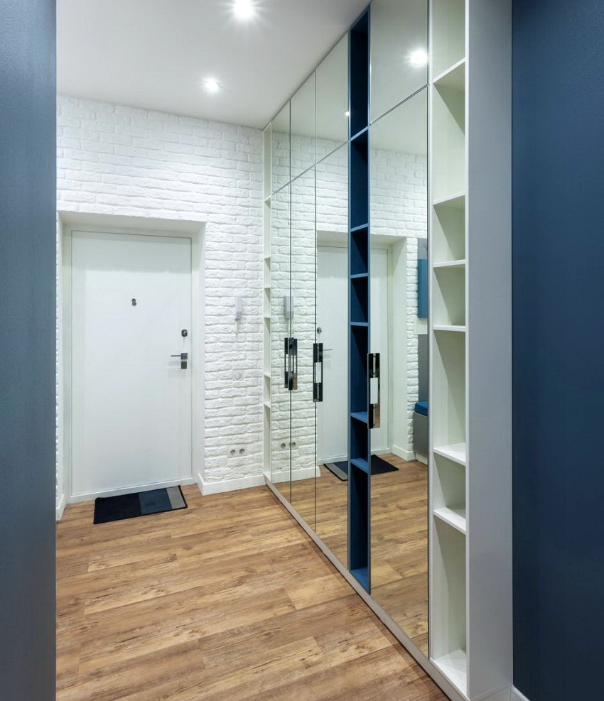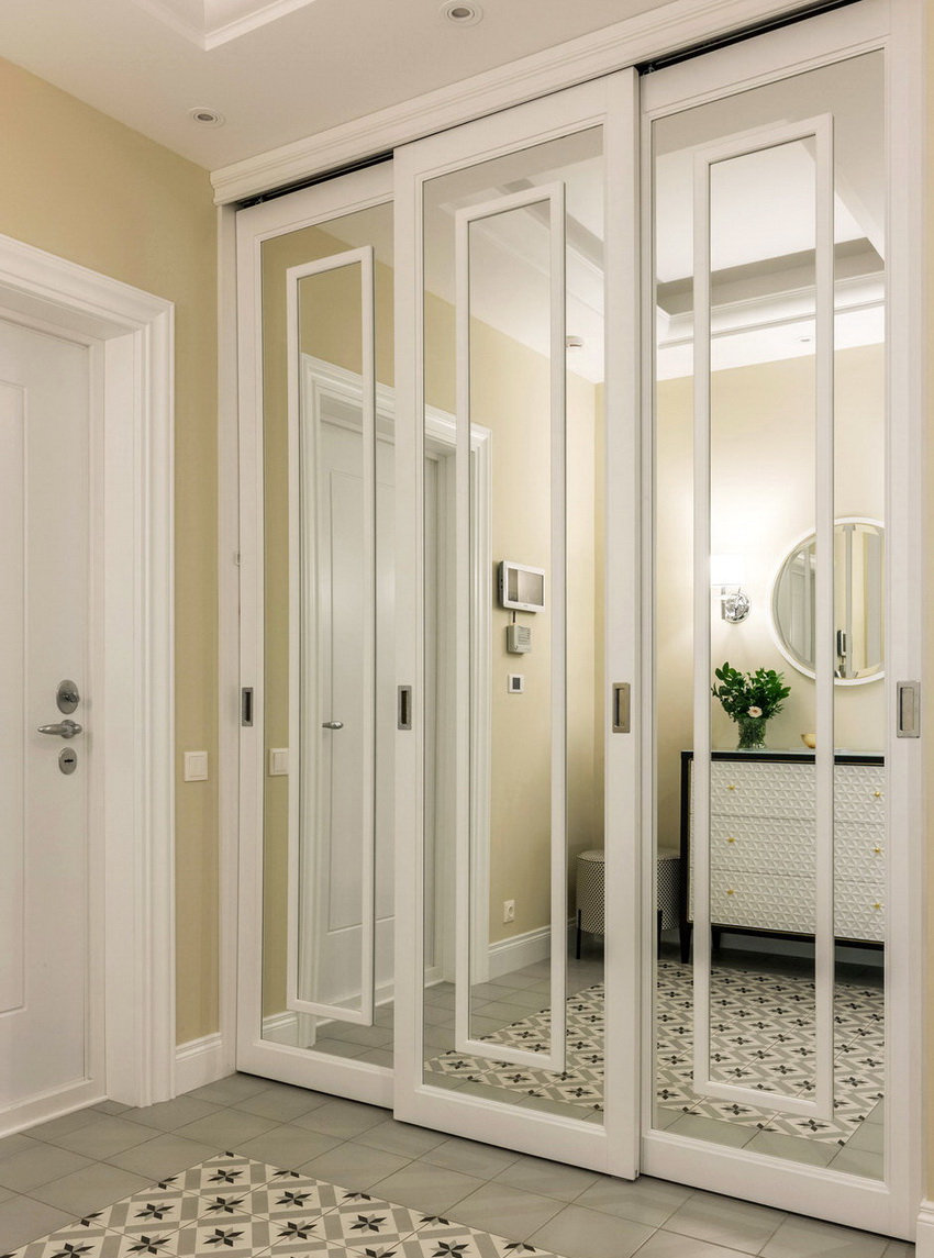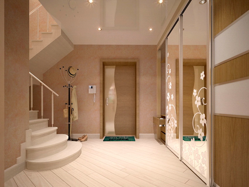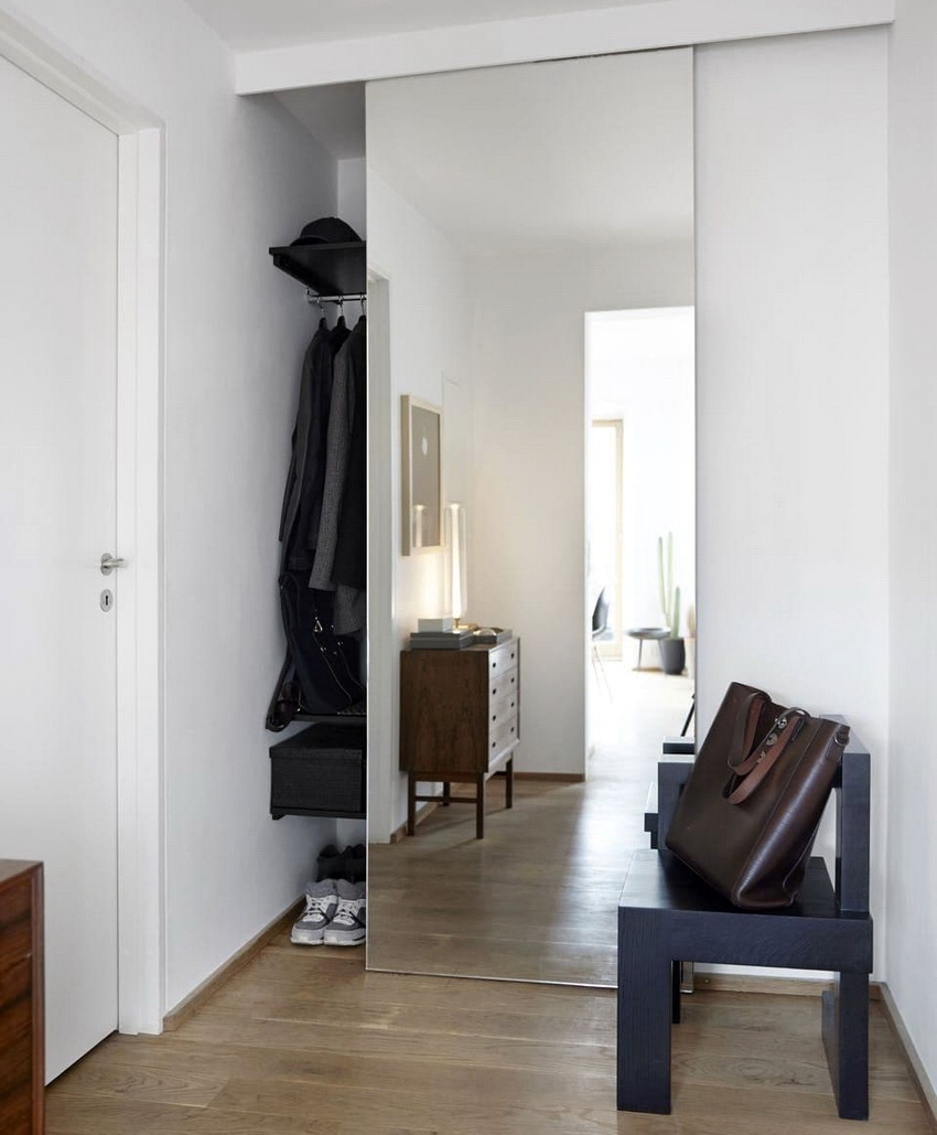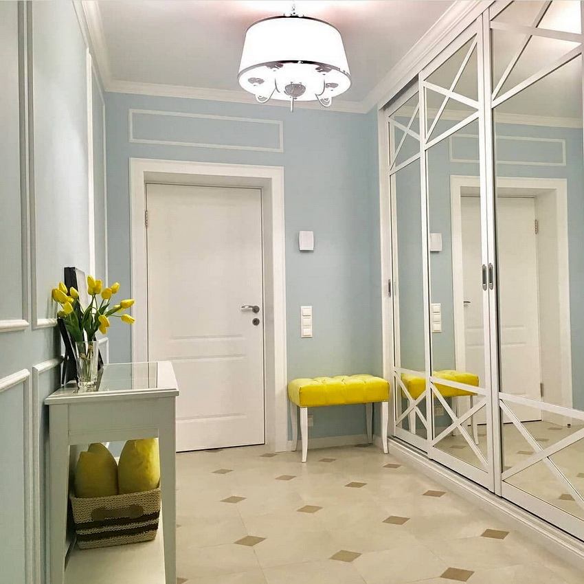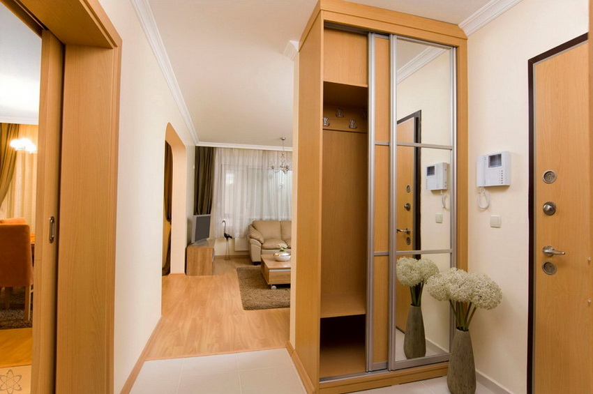 Mirrored doors installed in the wardrobe will expand the space, making the hallway noticeably larger