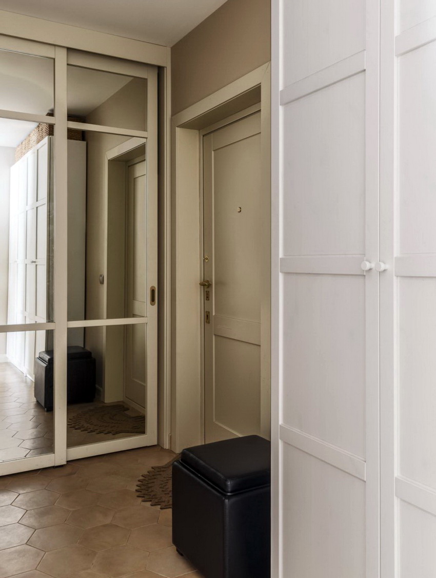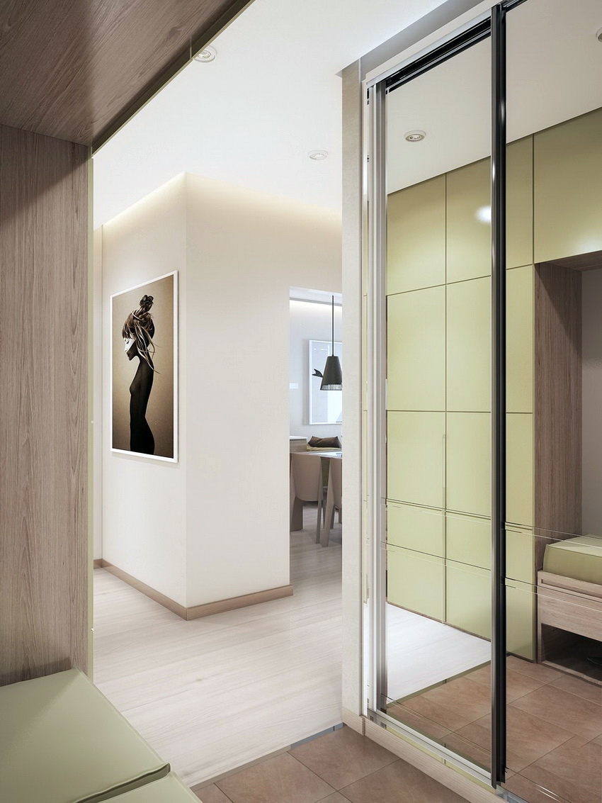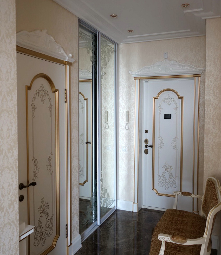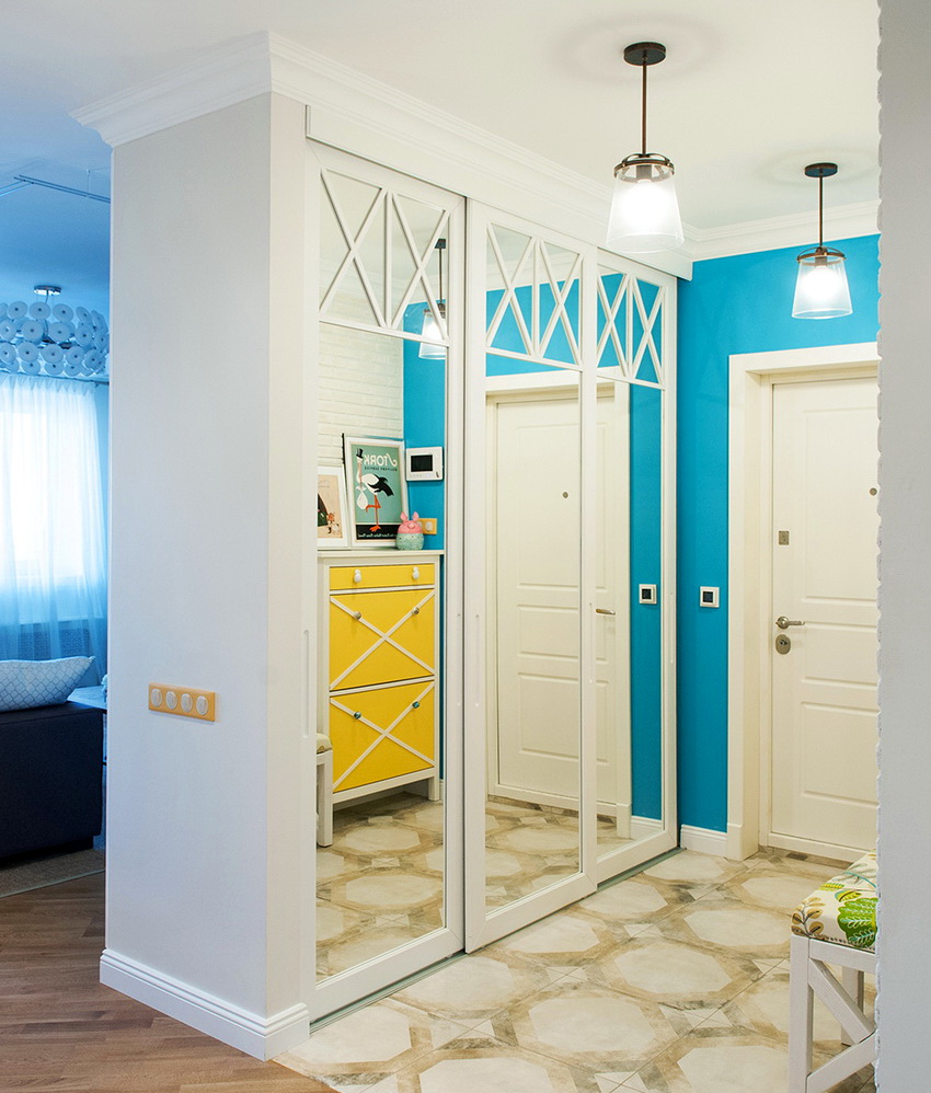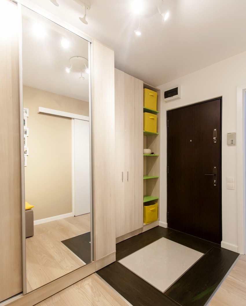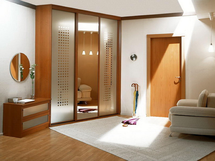 Mirrored doors installed in the wardrobe will expand the space, making the hallway noticeably larger