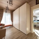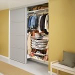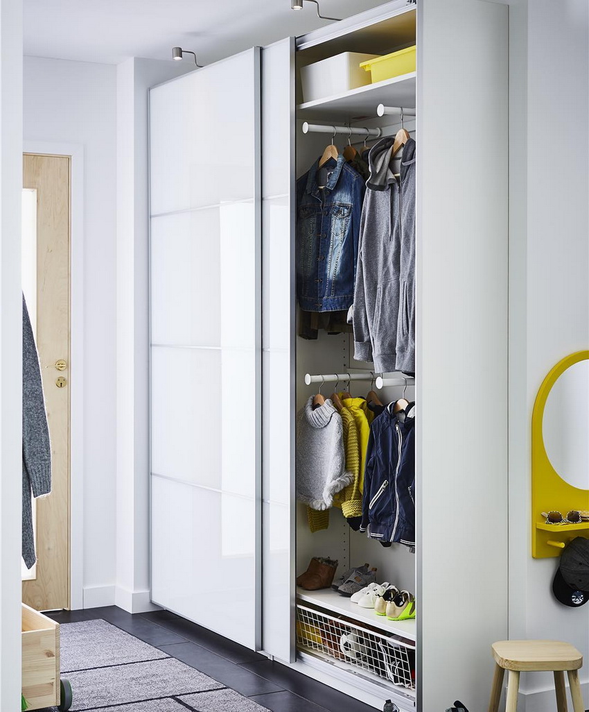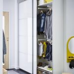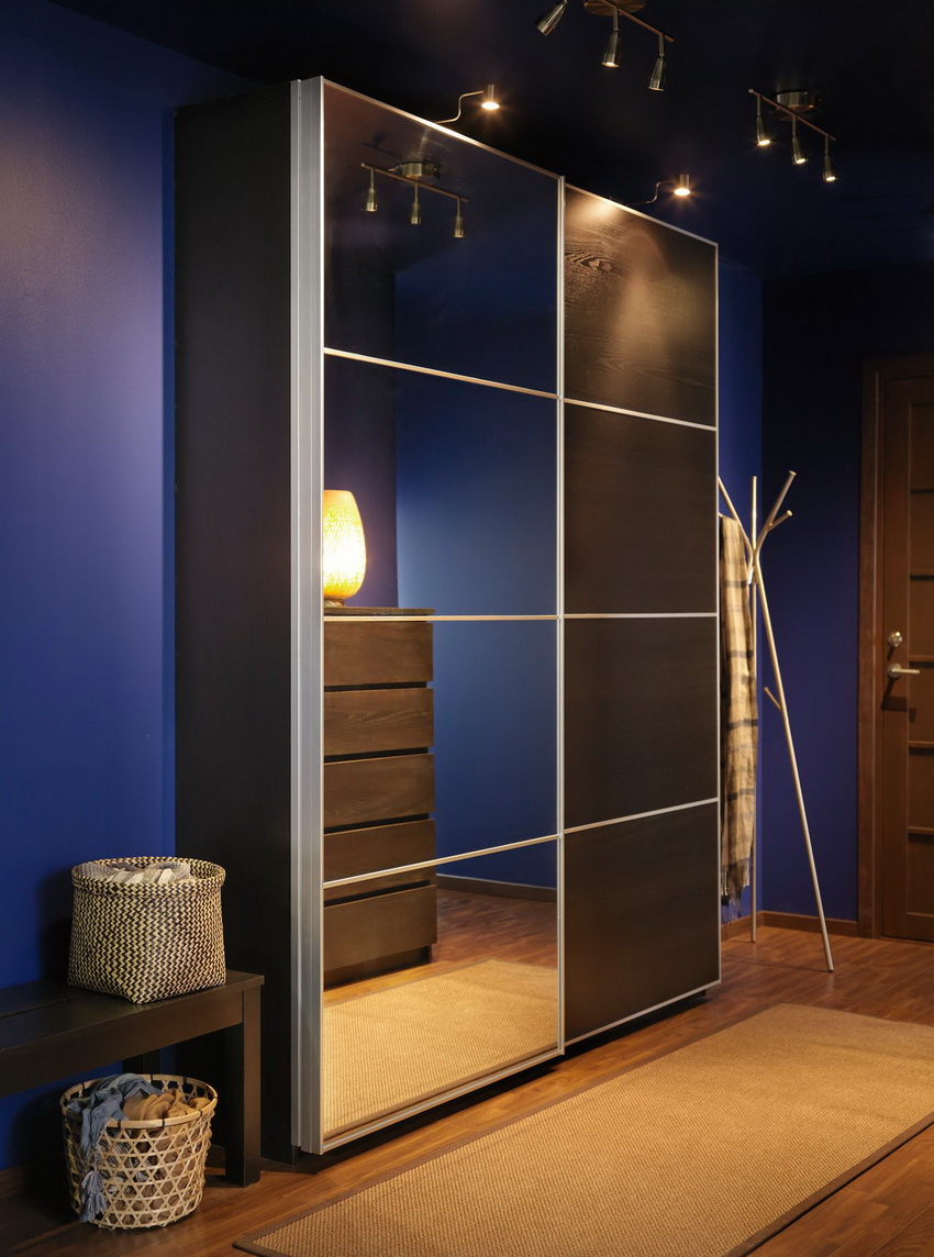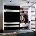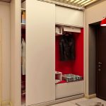 The best option for hallway is a wardrobe with a sliding door system. Due to the fact that the product can be shallow (only 45 cm), a lot of space is not required to install the structure. This is enough to accommodate outerwear, shoes and everyday accessories. Sliding doors allow you to save space by not having to have free space to open them.
