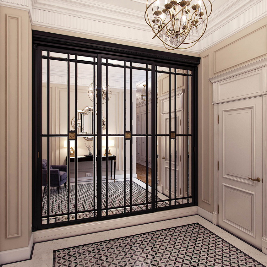 The reliability and durability of the doors depends on the material of the frame, where the canvases move. Aluminum products are considered to be of higher quality. They provide silent running of the canvases, do not deform and serve for a long time. Steel guides are cheaper. Their service life does not exceed 5-8 years.