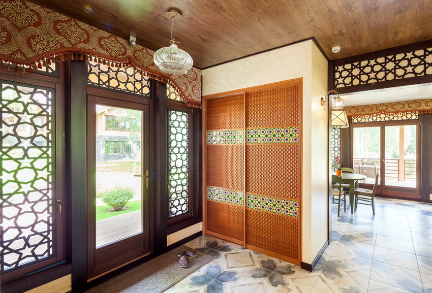 Rattan and bamboo facades look interesting and natural. Such furniture gives the room a feeling of warmth, naturalness and naturalness. It is relevant for corridors created in ethnic style. The design of the wardrobe in the hallway, made of artificial leather, will look luxurious and stylish. The model will become a real decoration of the corridor, decorated in a modern interpretation or in baroque style.