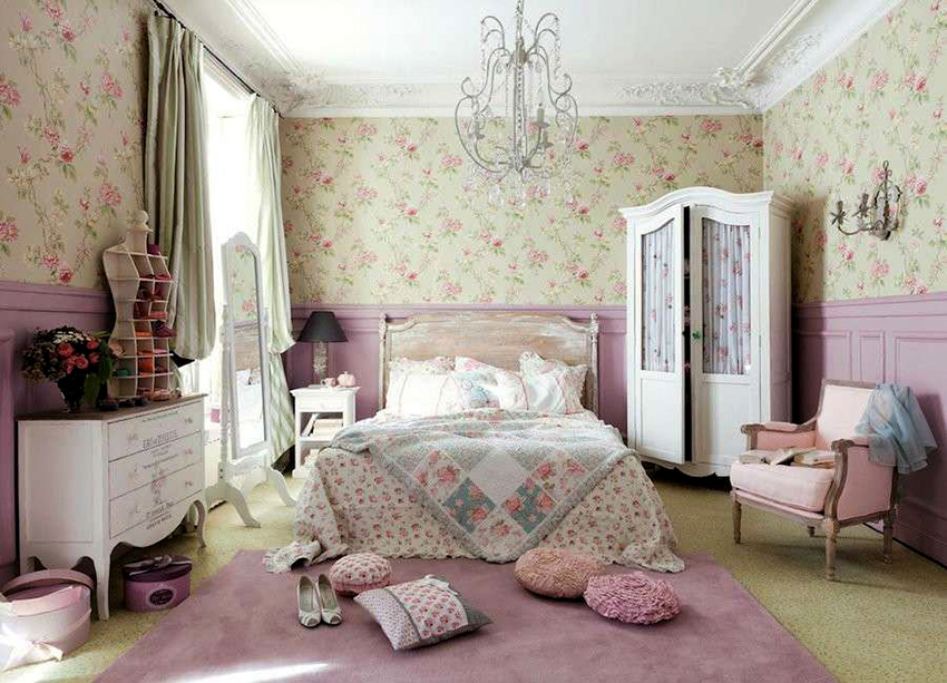 The interior will be complemented by light wide curtains with ruffles to match the bedspreads and pillows. In accordance with this direction, armchairs, bedside tables, chests of drawers, tables and sofas in the Provence style should be selected.Photos of examples of interior design can be found on the Internet.