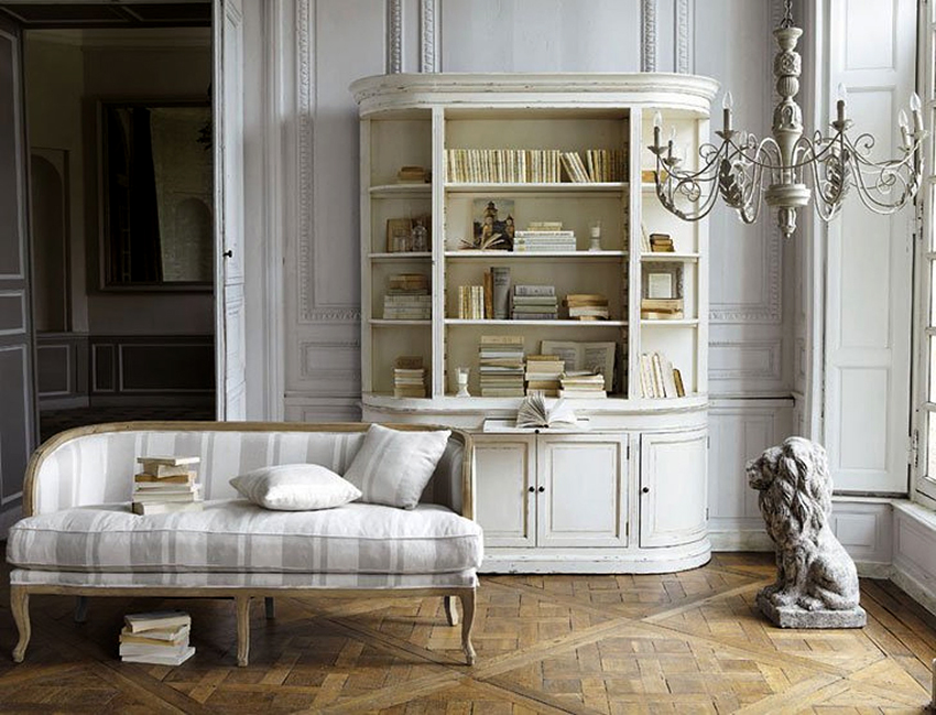 Most often, French country wardrobes and sofas are used in the setting of country houses.This was made possible thanks to their successful combination with wooden beams on the ceilings, fireplace and walls covered with textured plaster. At the same time, it should be noted that such furniture is actively used in the design of city apartments. It helps to create harmony and coziness, which is very important for a home atmosphere.