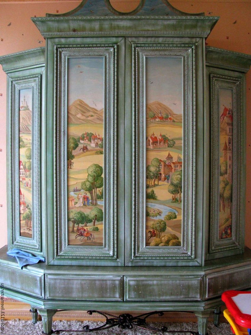 Wardrobe decoration. Various methods are used here - from hand painting to volumetric applique. Each owner chooses an option, taking into account his own abilities.