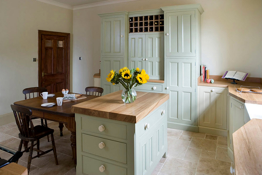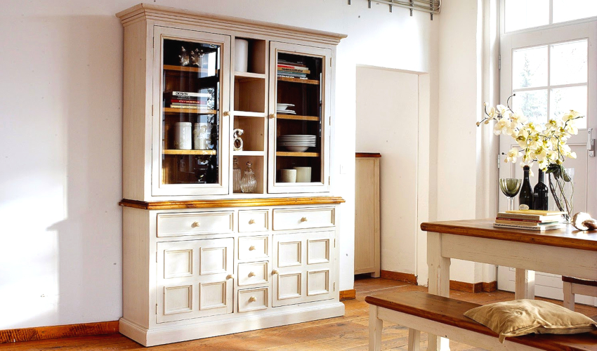 Kitchen cabinets that correspond to this trend are equipped with many different shelves and compartments, which makes it convenient to store dishes and kitchen utensils. These are niches for plates, drawers for appliances, systems for storing bulk products and spices. The main distinguishing feature of such models is their colossal capacity, and the main advantage is the ability to store food without fear for health, since Provence-style cabinets are made from natural materials.
