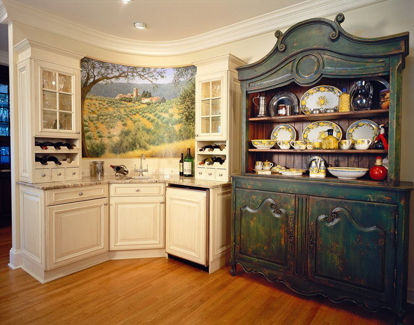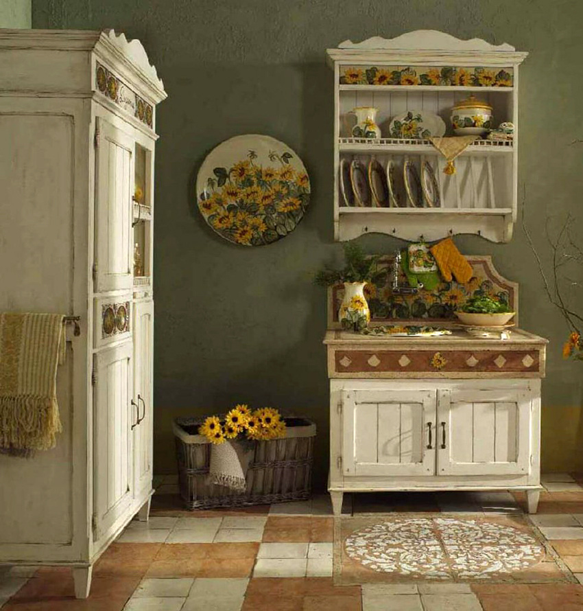Helpful advice! Provence style kitchen cabinets, decorated with drawings depicting fruits, vegetables, flowers or even fish, look original.