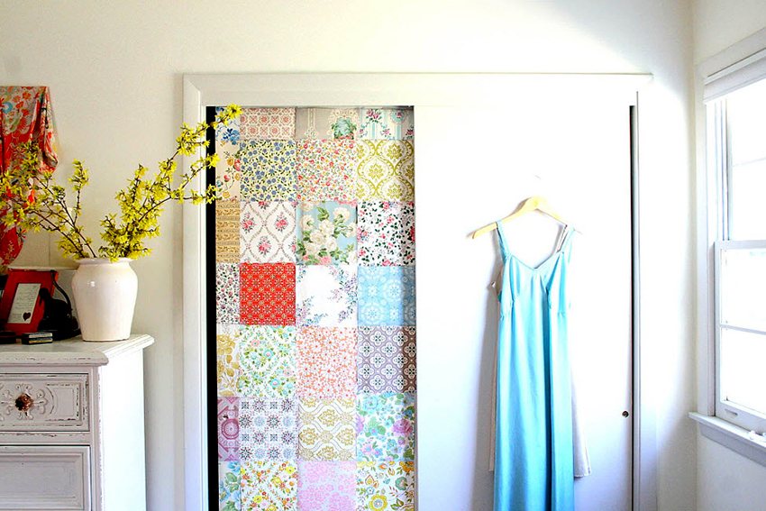 - wardrobes with glass doors are often decorated with floral, checkered or striped fabrics.