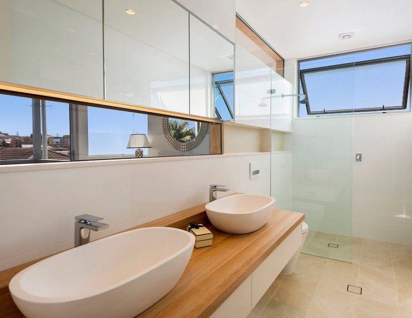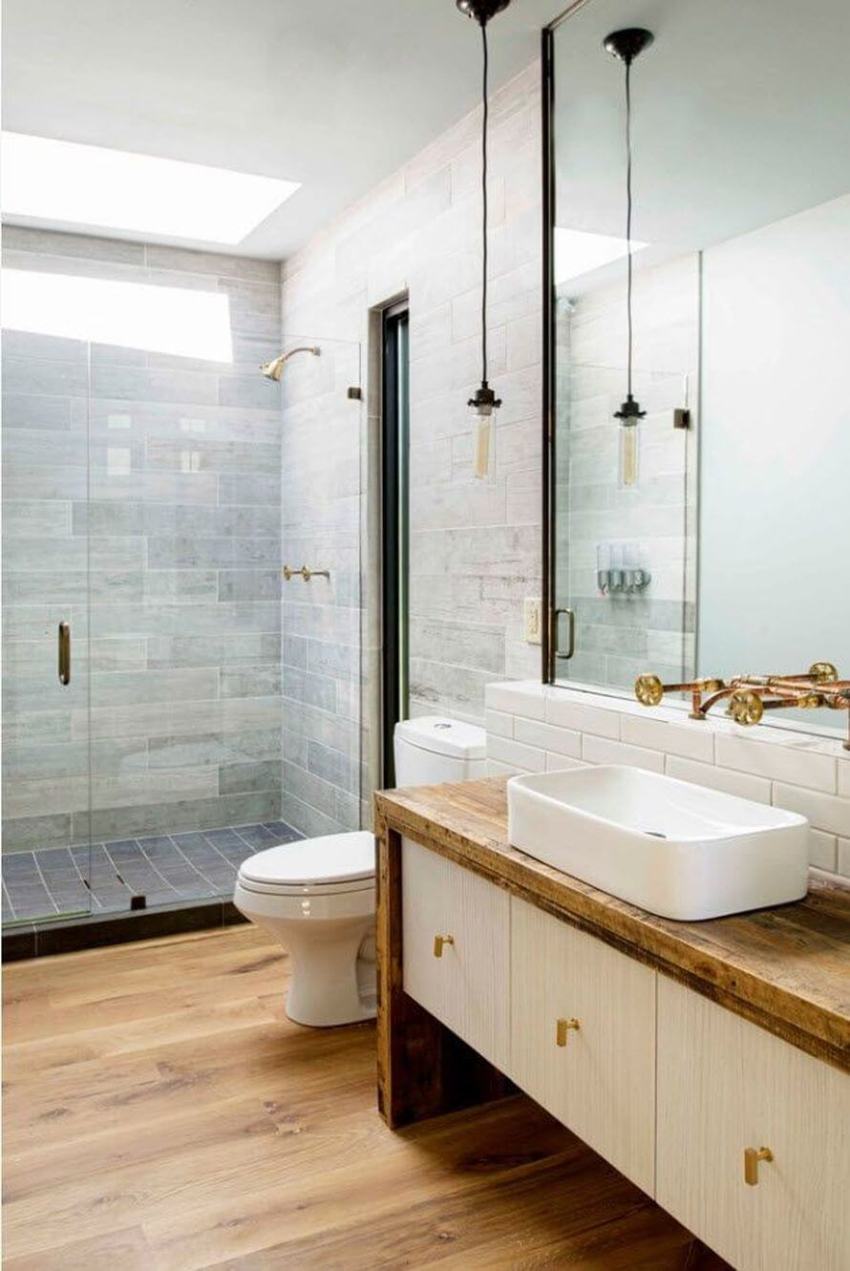 Lockers in the toilet room can be made of any material, it mainly depends on the wishes of the owners of the apartment and on the budget allocated for furniture. Most often, natural wood, chipboard or MDF panels are used for self-manufacturing of cabinet parts and doors. These materials are easier and easier to work with, they are easy to saw into the required sheets and attach to the walls. The main features of the materials: