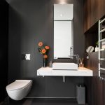 If a built-in toilet is installed in the room or there is some space behind the toilet, then the best option would be to install a built-in cabinet. This will allow the most correct organization of the bathroom area and not overload the space. Usually, a cabinet is installed above the installation in the toilet or with its help the niche behind the toilet is closed. In this case, it is necessary to adhere to the rule requiring that the structure does not reach the modular hinged system.
