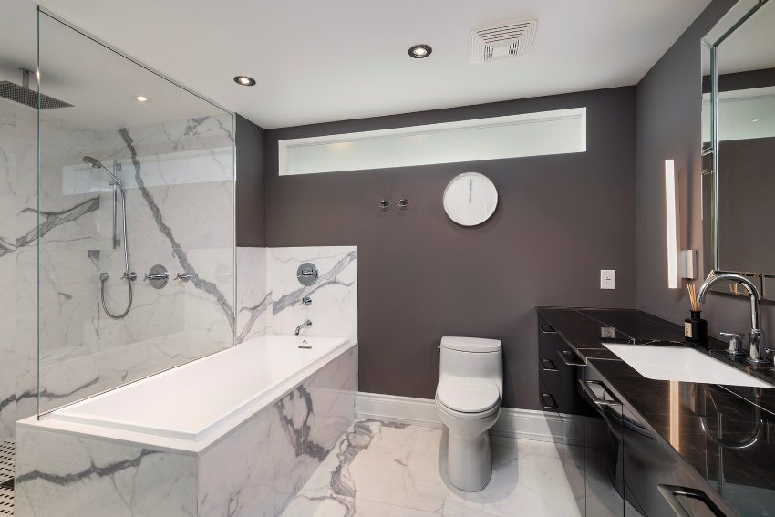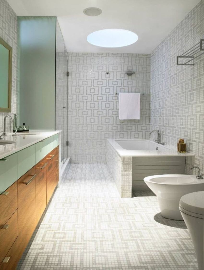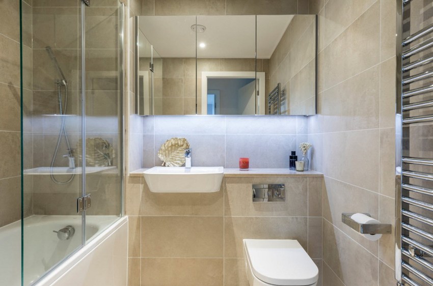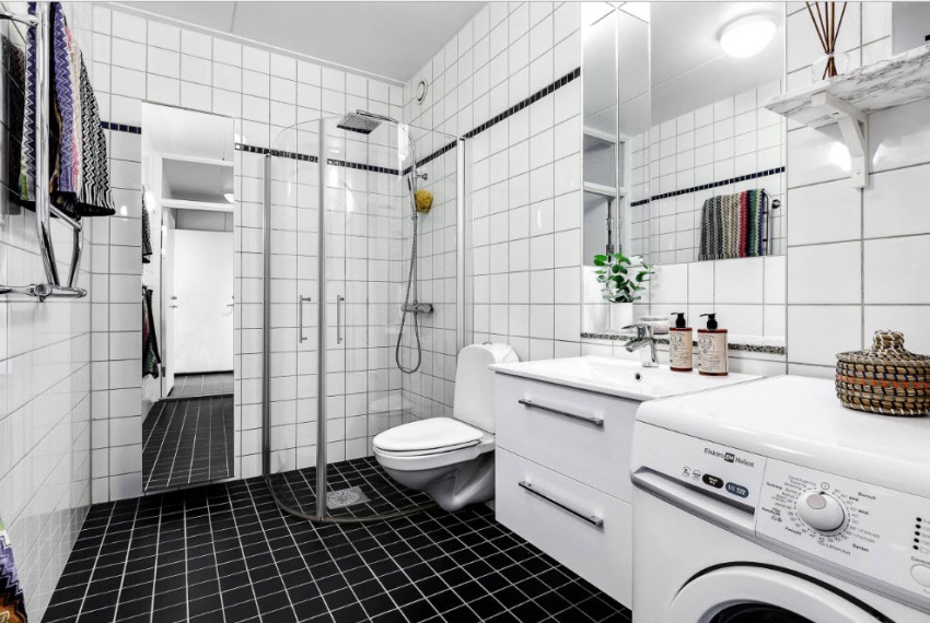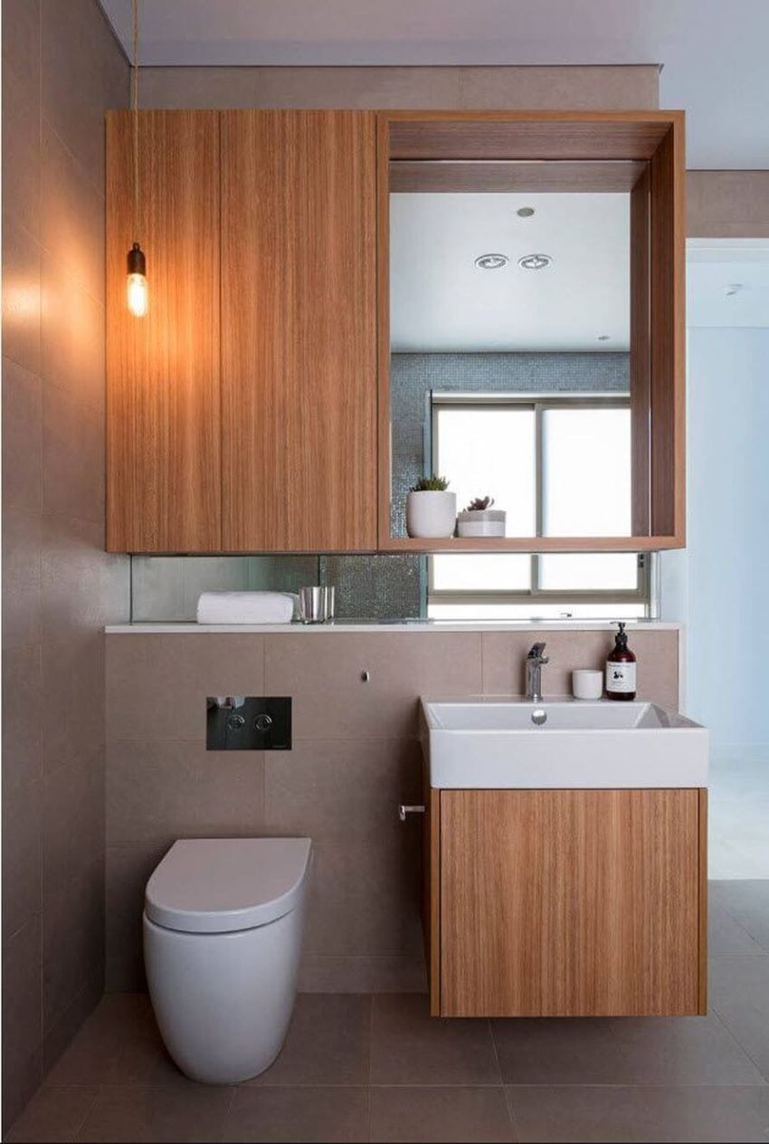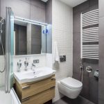 This piece of furniture will help you organize the room correctly. A well-thought-out, built-in closet in the toilet will become a place where household chemicals and other cleaning products will be stored. This method allows you to rationally use the entire area of even a small bathroom in an apartment with a small area.