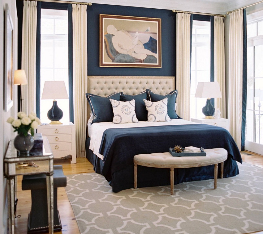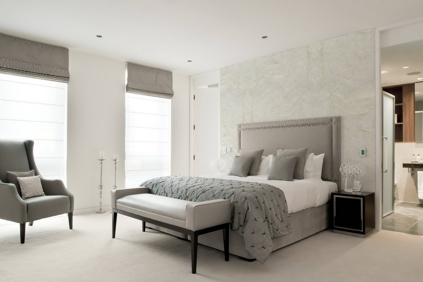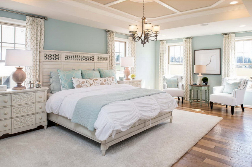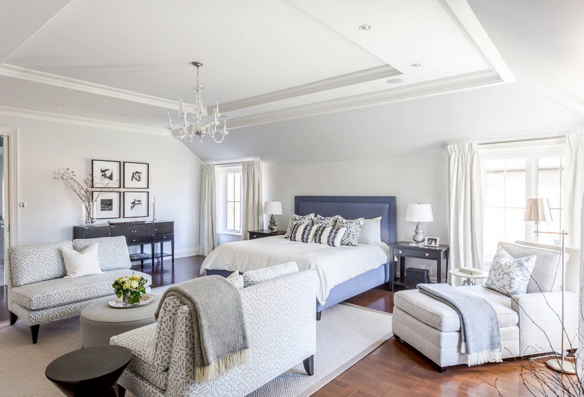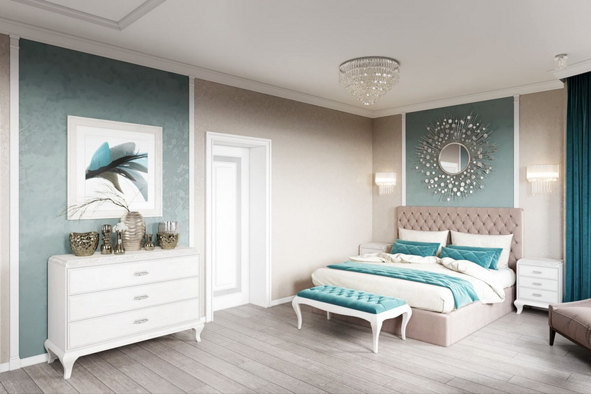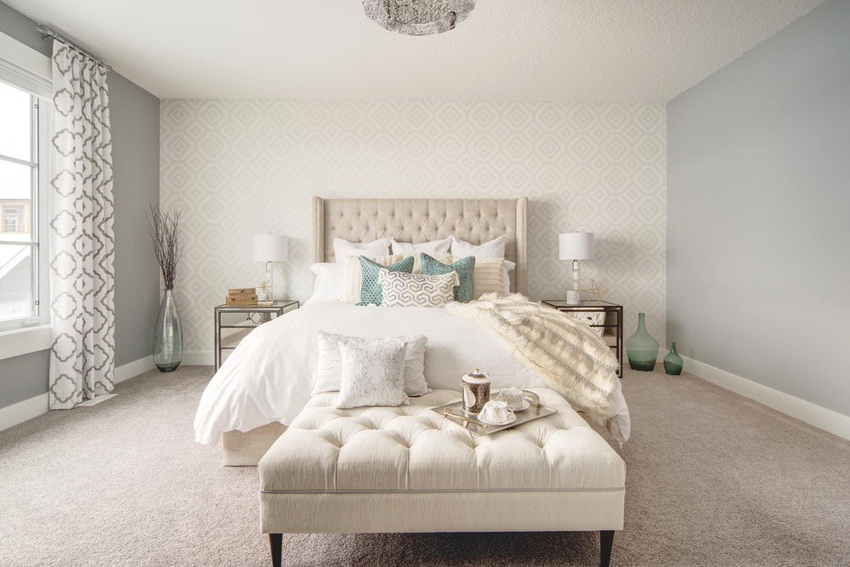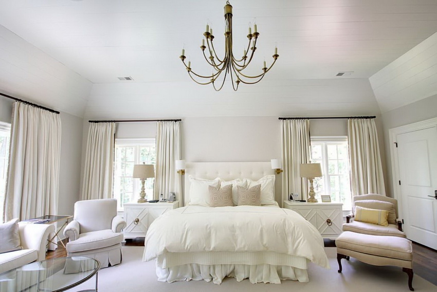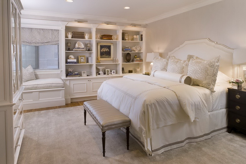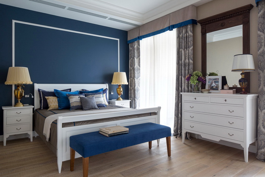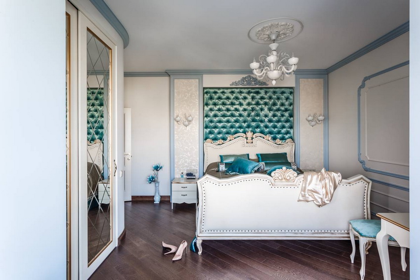 White color perfectly combines with all shades of blue, green, beige, which allows you to create truly luxurious bedroom interiors