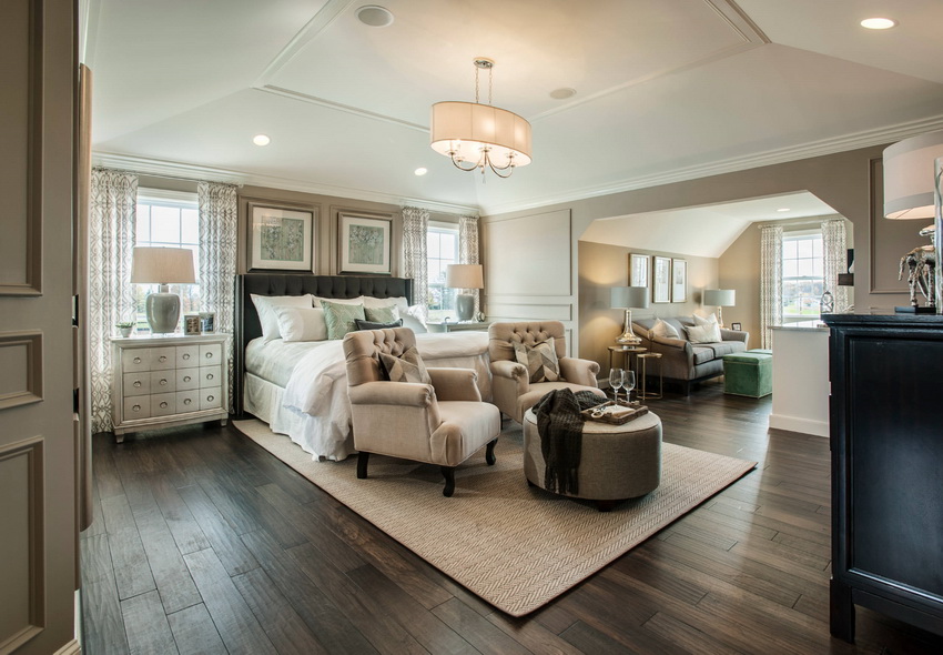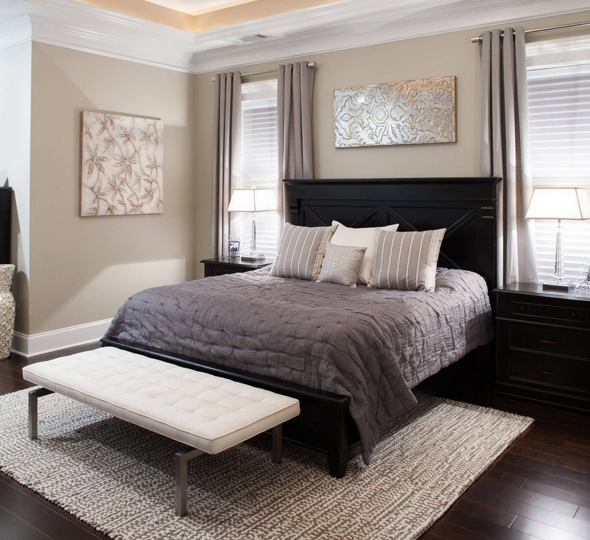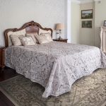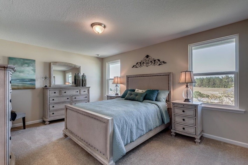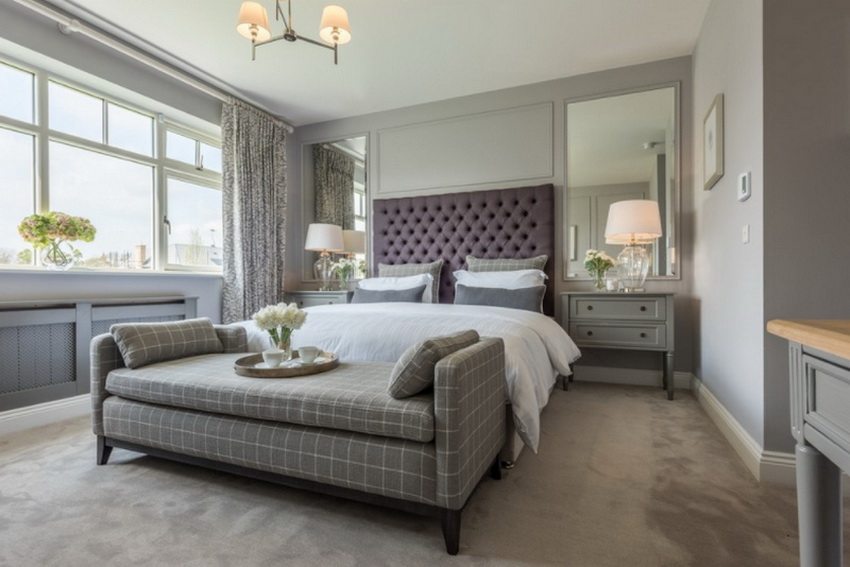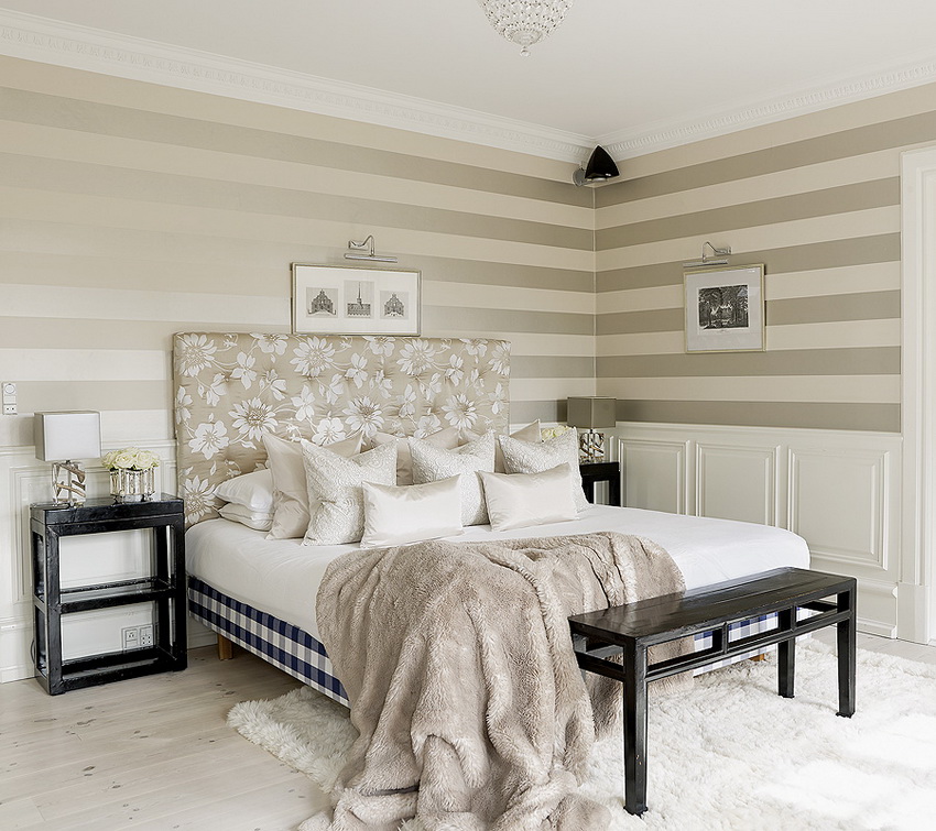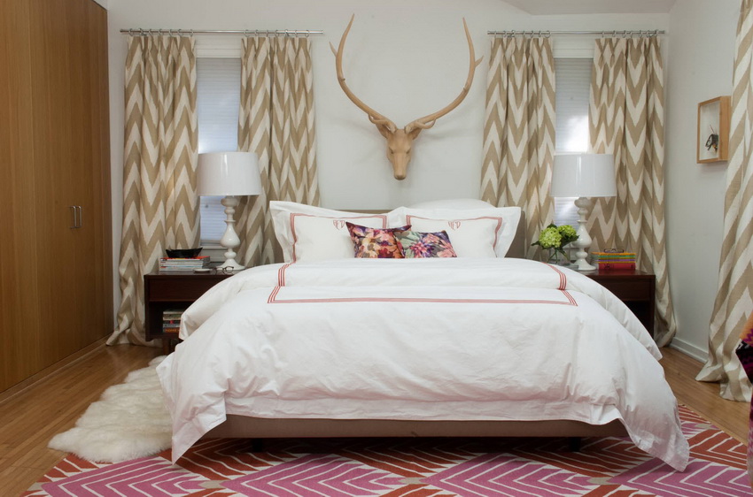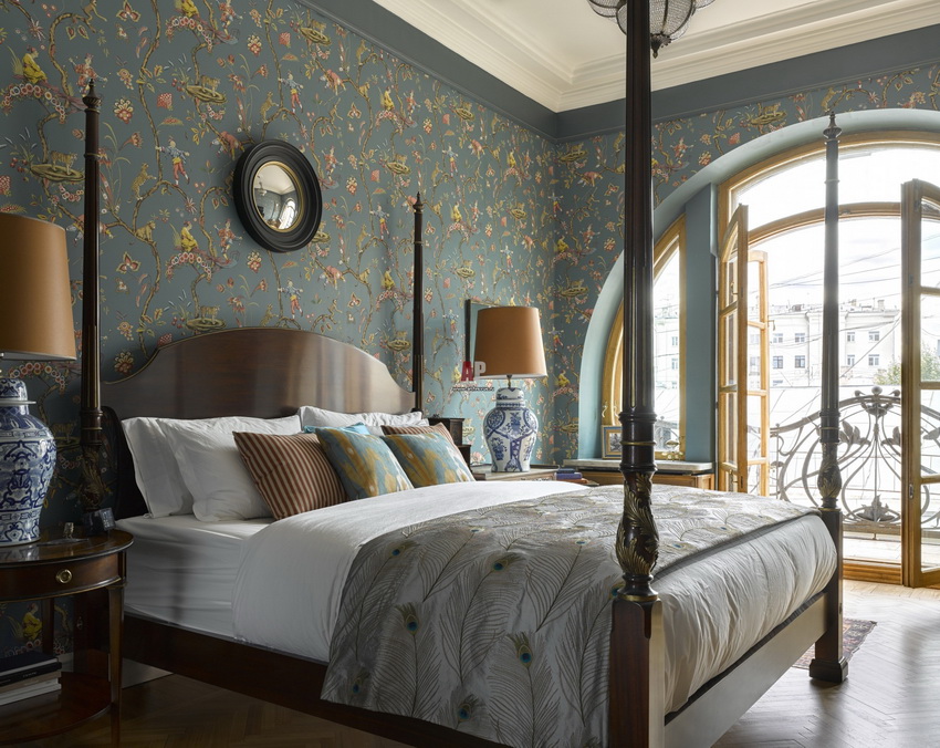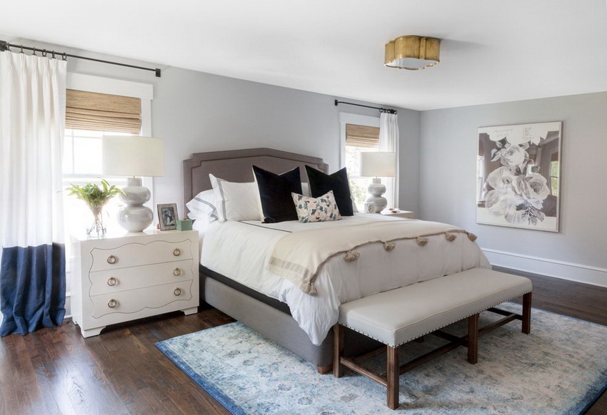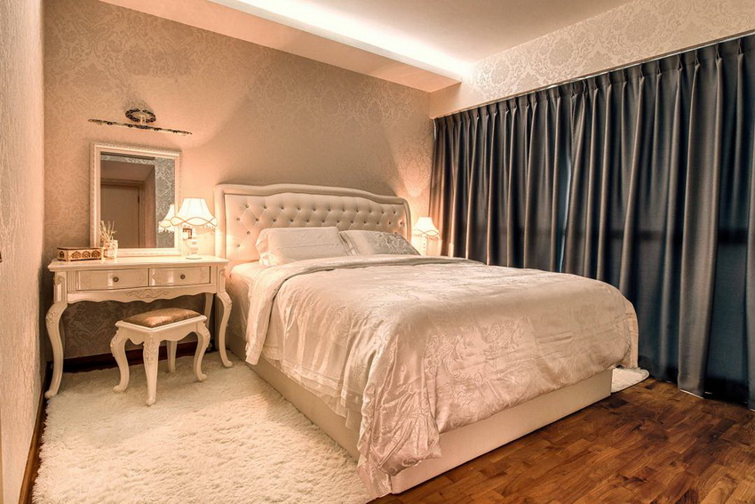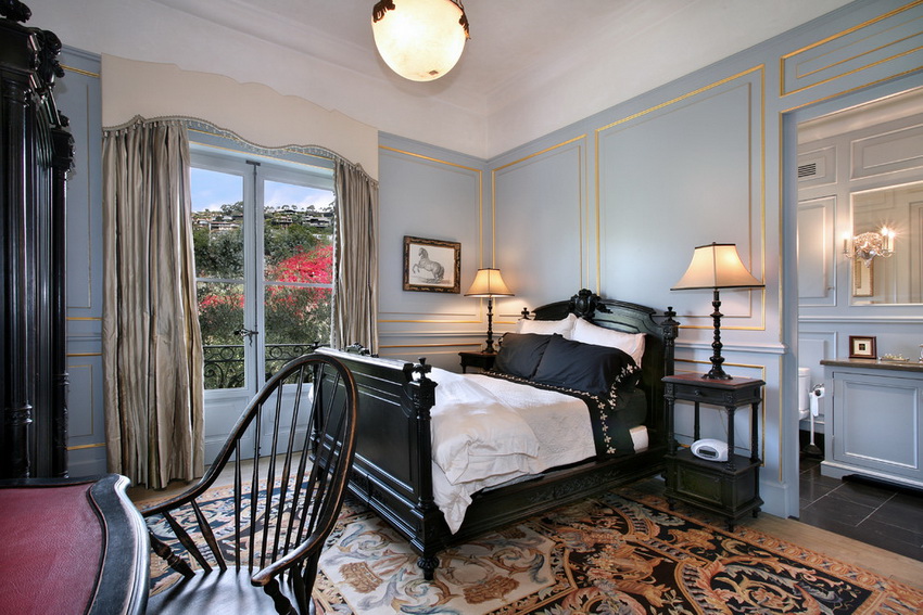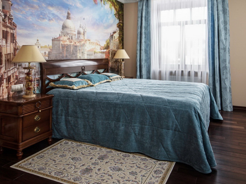 If the room seems too impersonal, you can put a small carpet with a clearly visible pattern by the bed, or choose a bedspread of a more saturated shade. Adherents of neoclassicism, suggesting a bedroom set made of massive furniture with carved legs and ornate patterns, heavy curtains, lampshades, should remember that the room where all this is supposed to be placed must have high ceilings and large enough window openings.