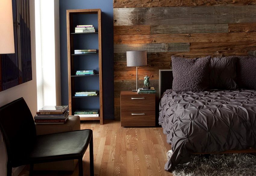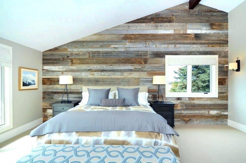 Quite often, when creating a bedroom set, two types of material are used: for the main elements carrying the load, dense wood is used, for decorative elements - softer. The use of wooden slabs has become popular - solid slabs that retain the structure and shape of the tree.They are installed as headboards at the head of the bed, on the upper surfaces of cabinets and dressing tables.