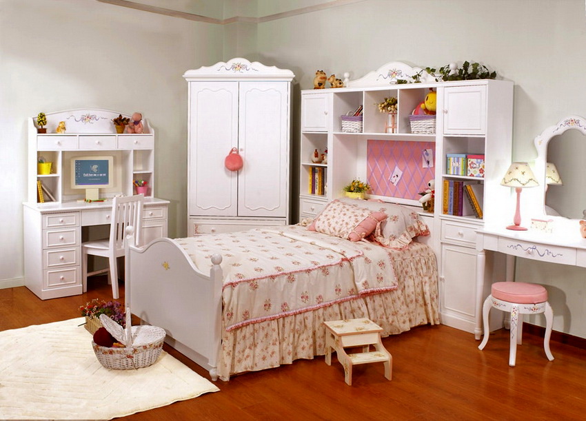 Does the gender of the child affect furniture design? Manufacturers create versatile options. A children's bedroom set for girls, in addition to the basic configuration, can be supplemented with a flower stand, a soft ottoman, a decorative chest of drawers. But the children's bedroom set for boys is distinguished by a smaller number of components (shelves, dressers), as well as the presence of sports equipment: wall bars, crossbars, rings, etc. However, I want to emphasize that the difference is very conditional.