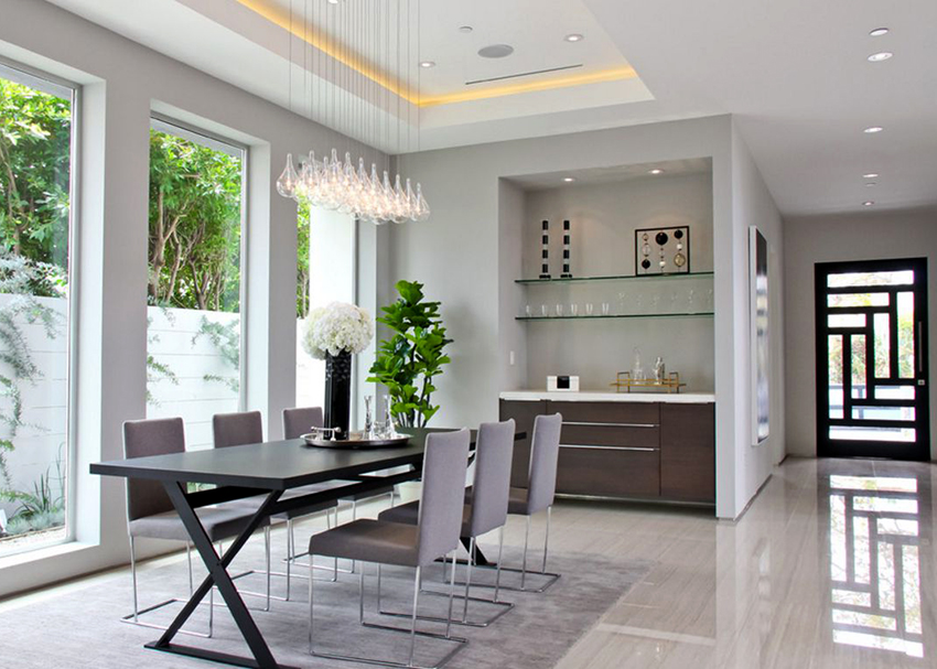 An interesting addition to the interior is the illuminated glass shelves made with spotlights. Most often, shelves located in niches and cabinets are decorated in this way. The vertically directed luminous flux draws attention to objects located on the glass and acts as a soft night lamp.