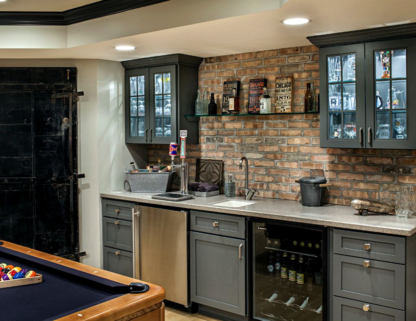 For cabinets for other purposes, glass options with a greater thickness can be used. The color is chosen both identical to the base material of the cabinet, and contrasting. In this case, the glass shelves can also be illuminated. The safest option is LED strip.